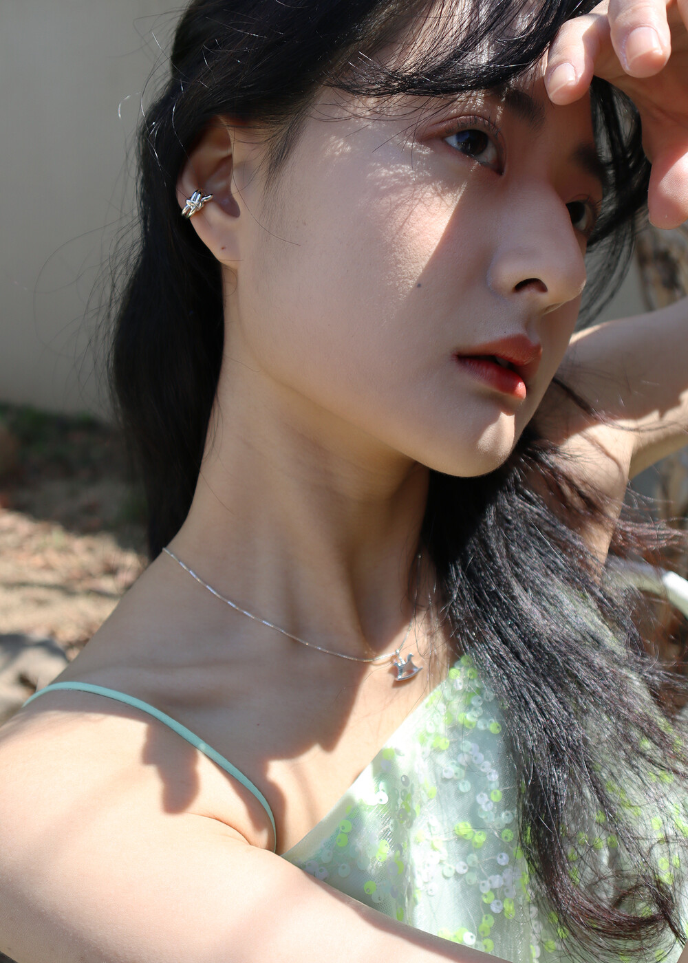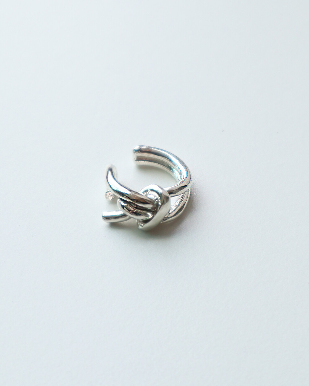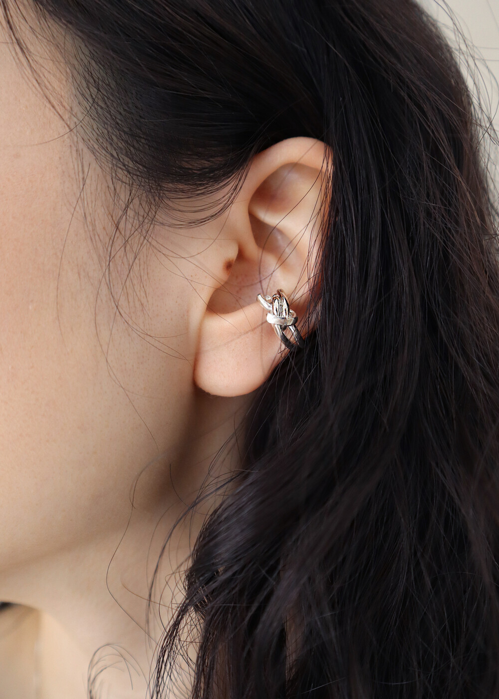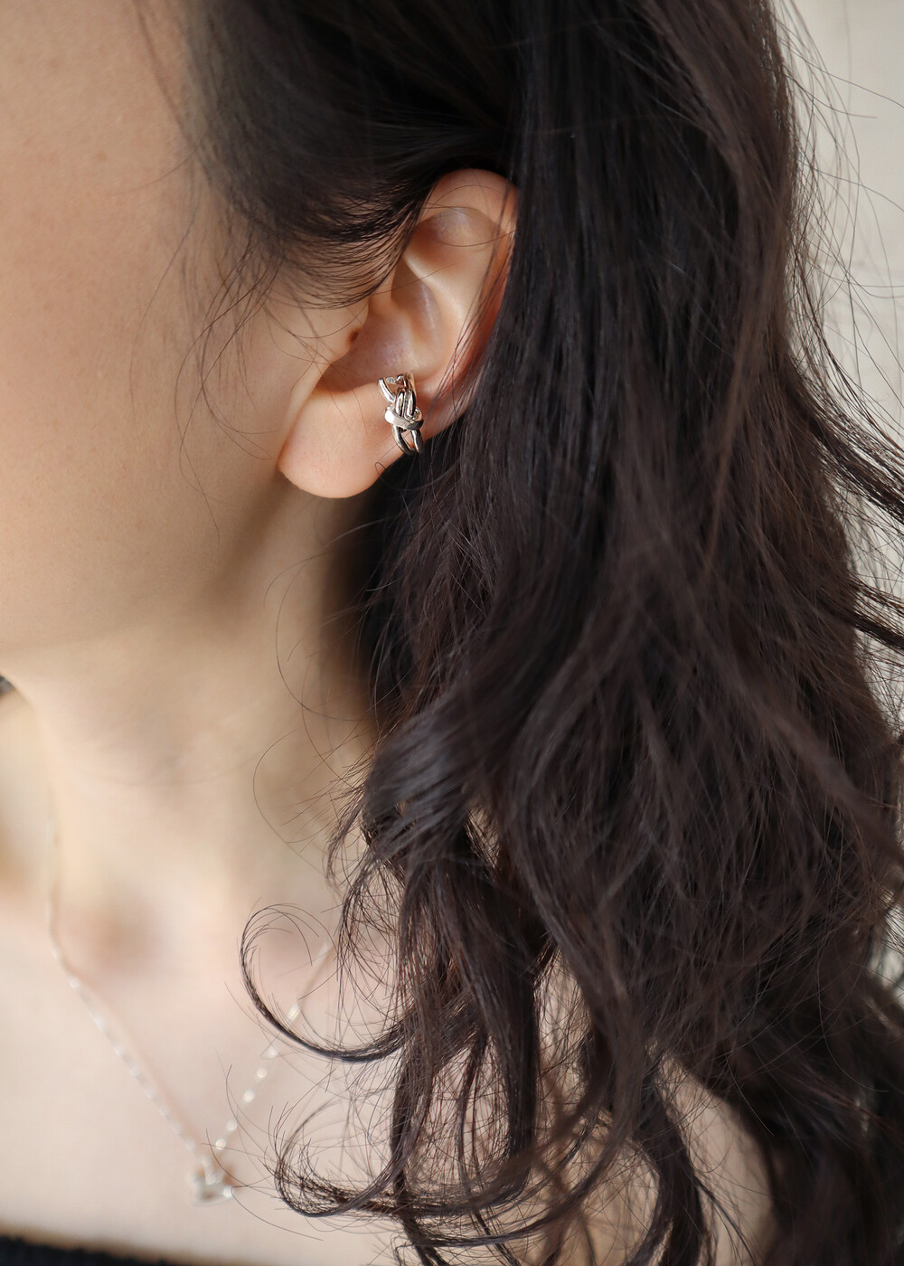 매듭이 단단하게 지어진 형태의 이어커프입니다. 적당한 꼬임과 크기로 데일리하게 착용가능하시며 이번 컬렉션 중 가장 추천드리는 이어커프 제품이기도 합니다.
