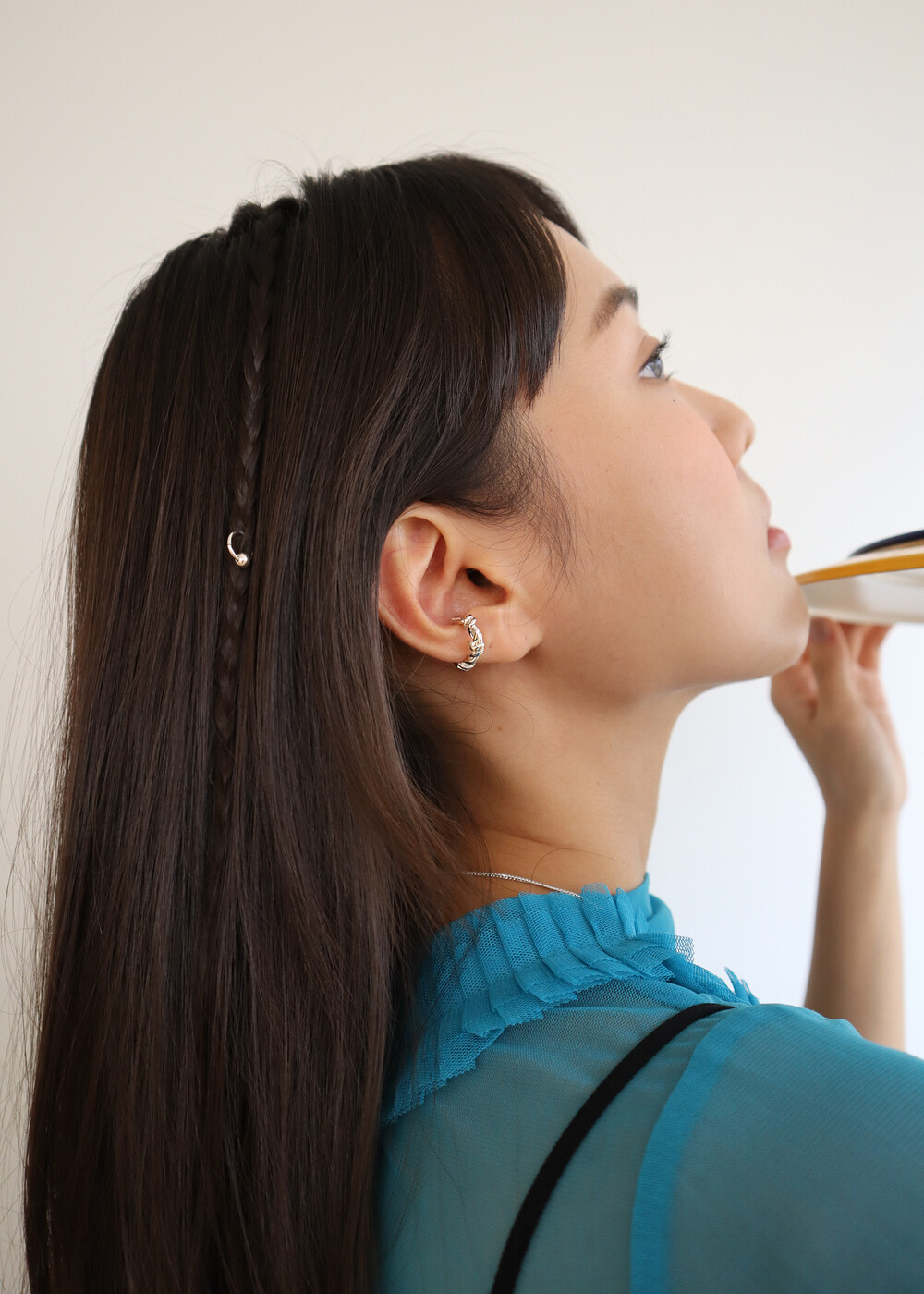 테스의 시그니처 꼬임패턴의 이어커프로 앞뒤 다른 느낌으로 착용가능합니다. 취향에 맞게끔 착용해주세요