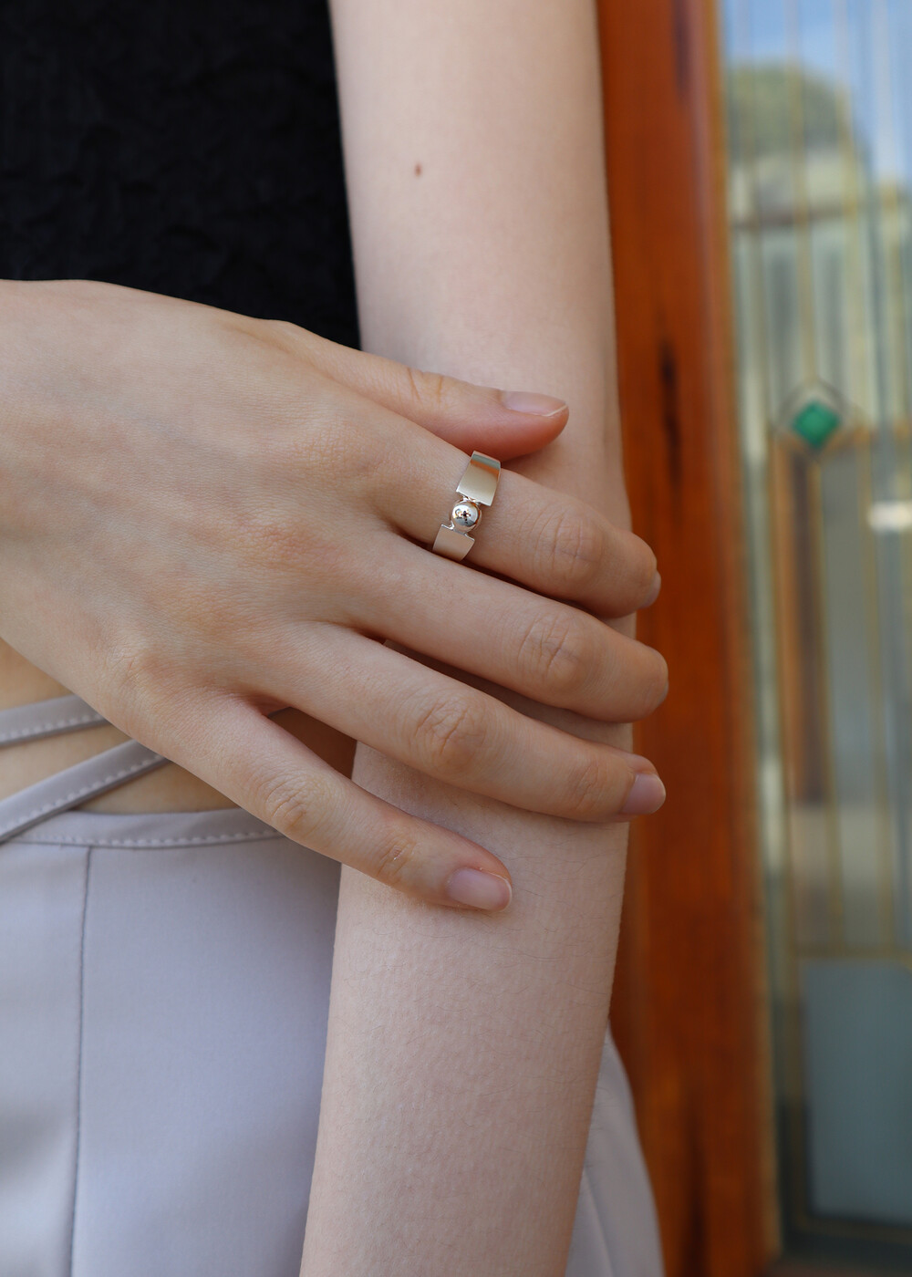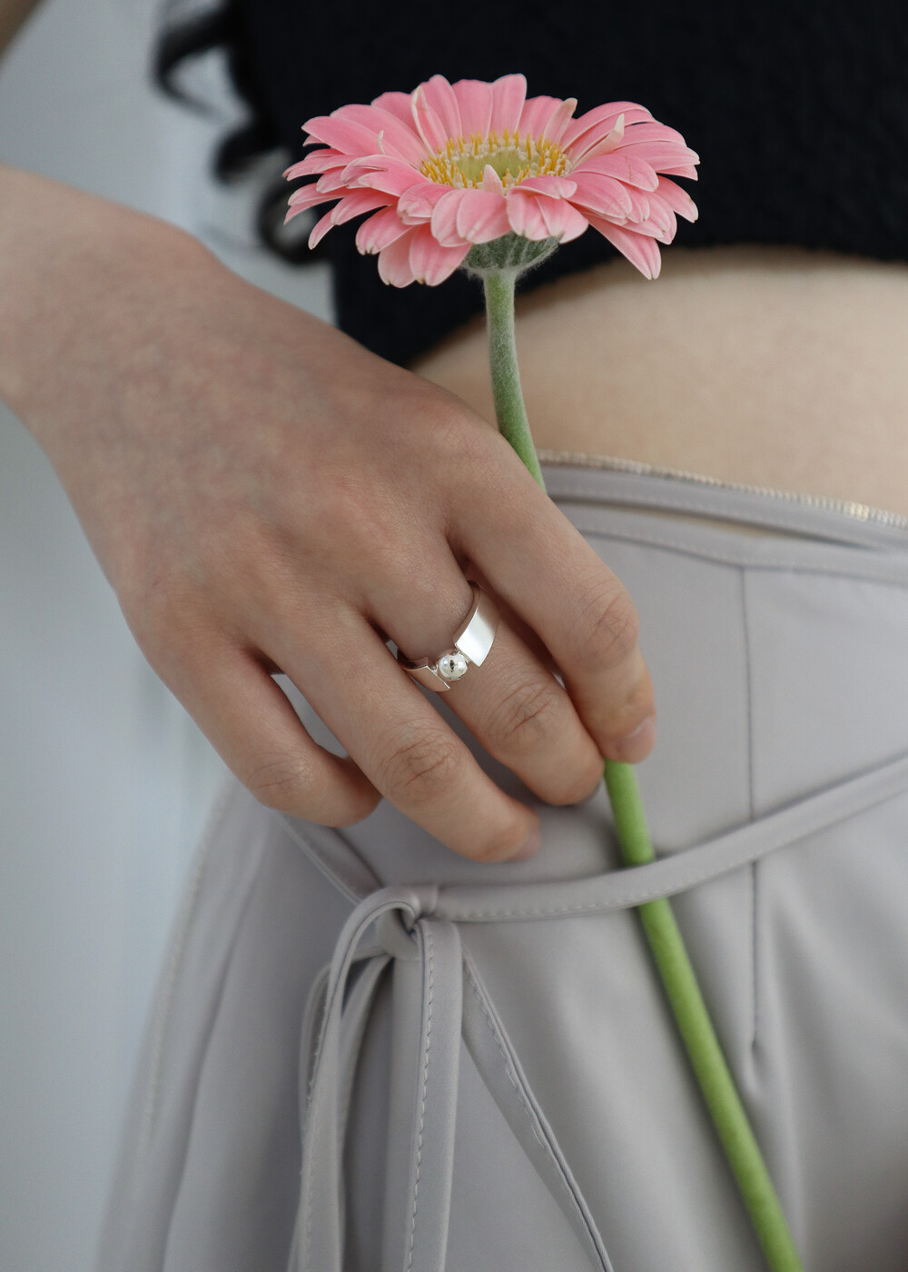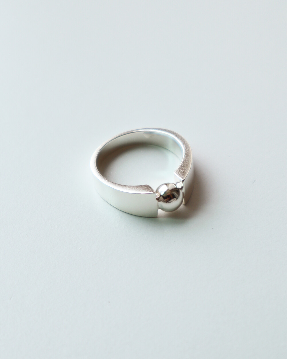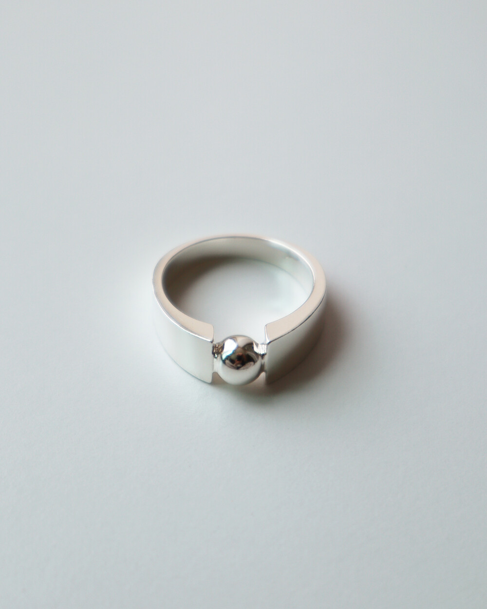 링 가운데에 실버 볼이 세팅되어 있는 세미 볼드 반지입니다.