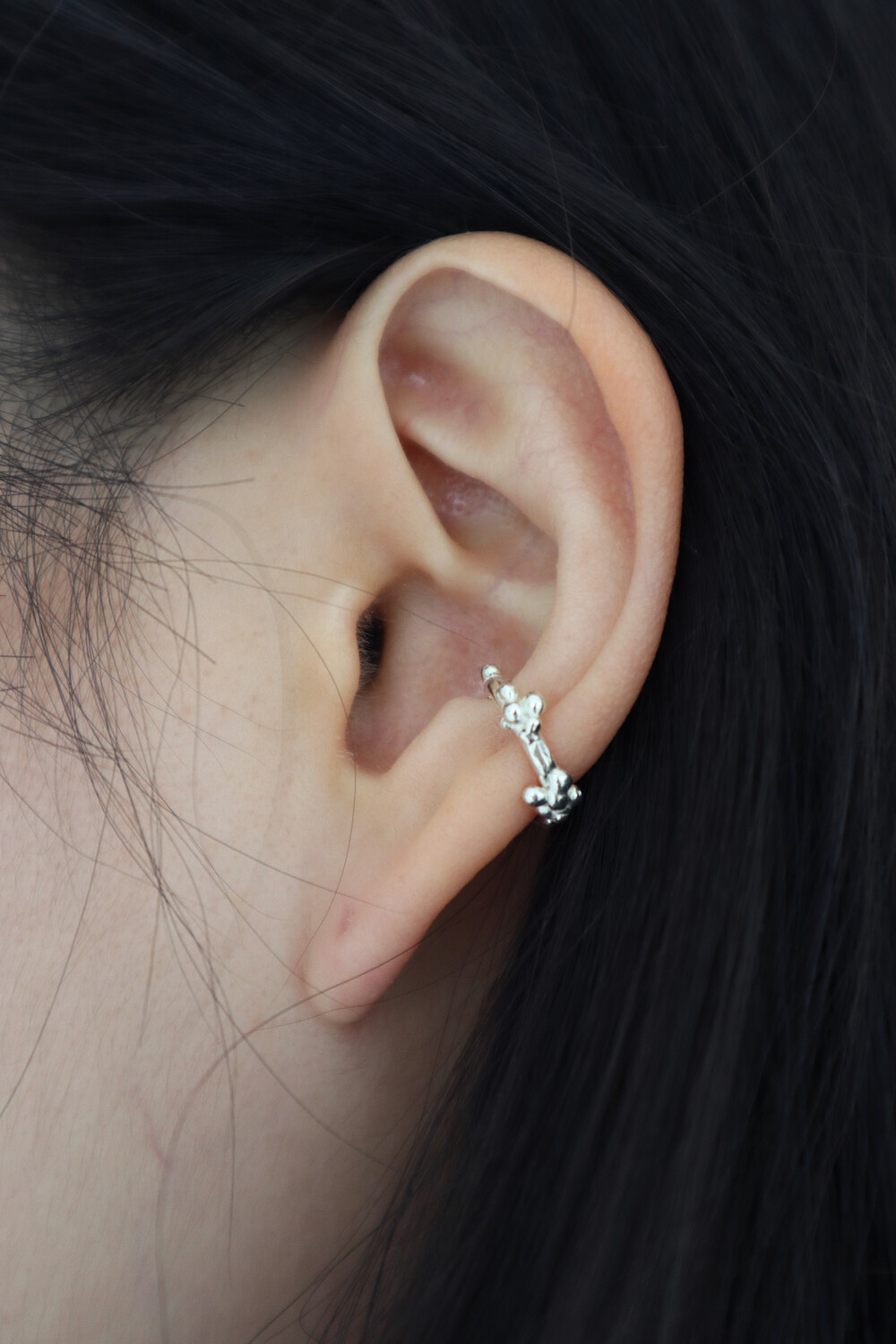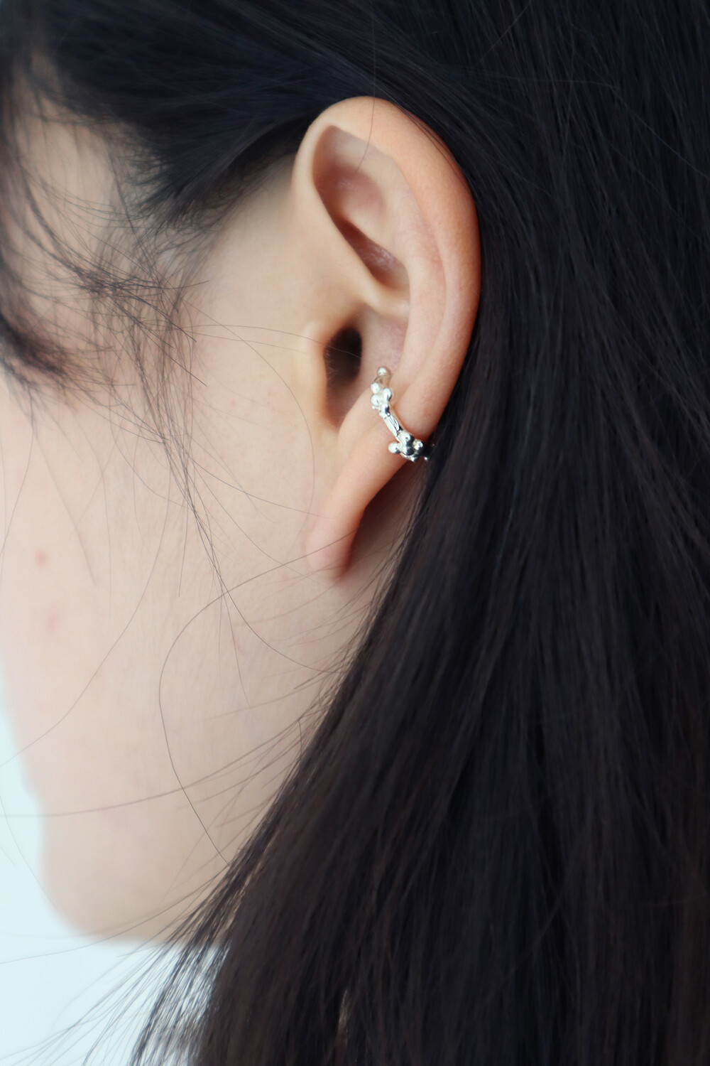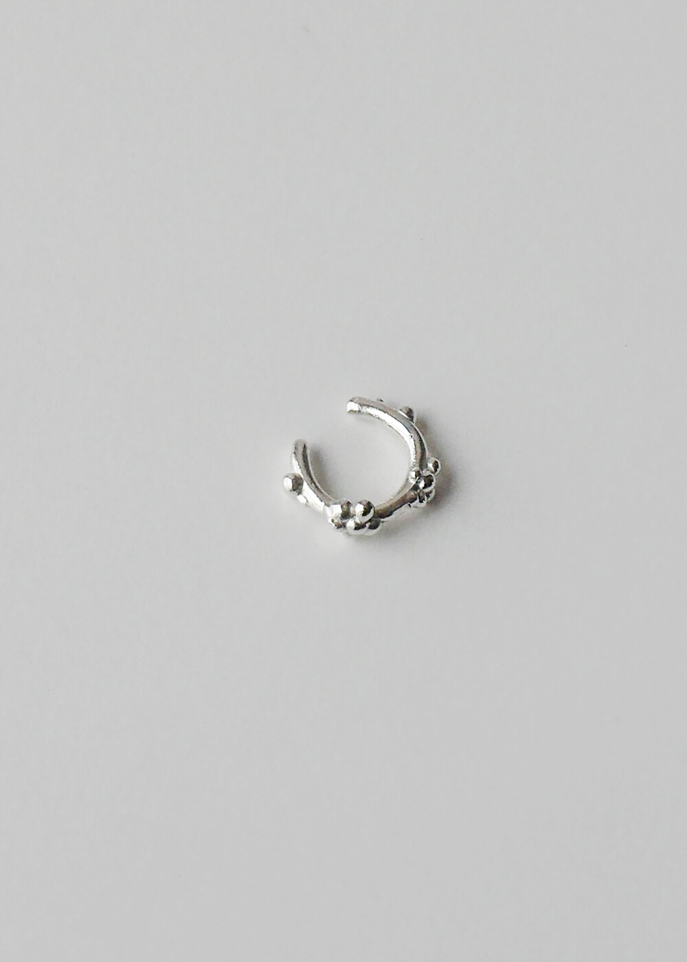 버블 이어커프는 귓바퀴를 따라 콕콕 맺힌 듯한 비정형 물방울 디자인이 돋보이는 제품입니다.자연스럽고 유니크한 실루엣이 귀에 포인트를 더해주며, 사랑스럽고 감각적인 무드를 연출합니다.피어싱 없이도 착용 가능한 이어커프로, 데일리 룩에 귀여운 포인트를 더해보세요.