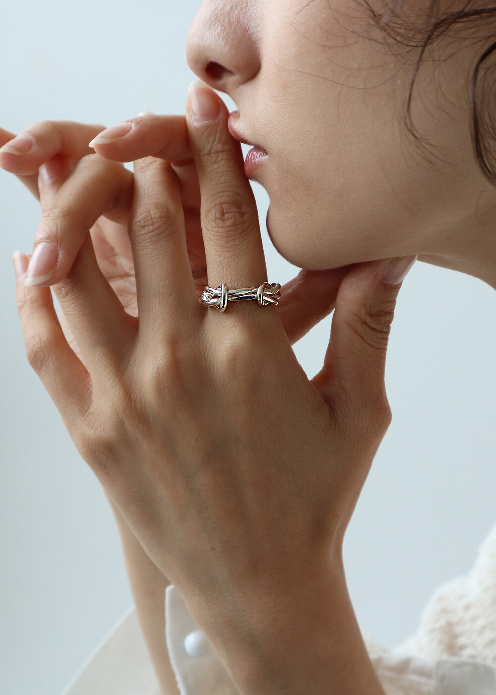 knit ring 01 의 볼드한 버전입니다. 니트의 짜임새에서 영감을 받아 제작된 제품으로 겨울철 여럿 니트류와 매치하기 좋은 제품입니다.
