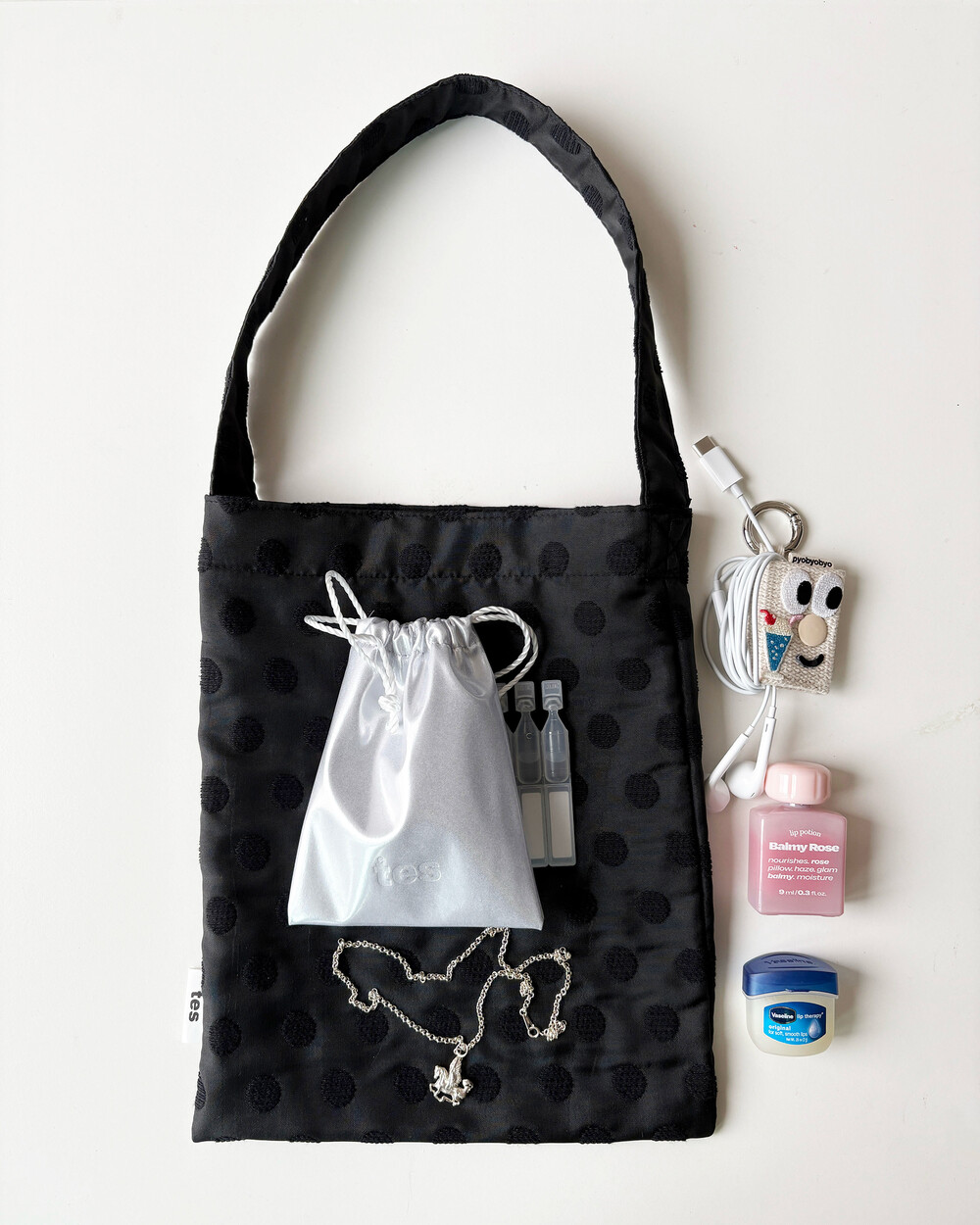 테스의 첫 번째 페브릭 가방 도트미니백 버전 1 입니다 :) 요즘 제가 잘들고 다니고, 필수로 챙겨 다녀야하는 물품들을 미니도트백에 넣어서 이용중이예요! 도트무늬가 자수 형식으로 짜여있어서 더욱 유니크 한 원단으로 탄탄함까지 두루 갖춘 에코백 입니다. 작아서 서브백으로도 사용하실 수 있고 여행시 간단히 외출하실 때도 들기 좋아요.