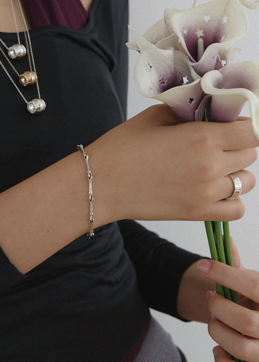 bone 팔찌는 굵직한 팬던트들이 이어져 있는 체인 디자인으로, 남녀 구분 없이 누구나 착용하기 좋은 제품입니다. 유화 처리를 통해 빈티지한 무드를 살렸으며, 단독으로도 존재감이 확실하고 다양한 스타일링에 포인트를 주는 아이템입니다.