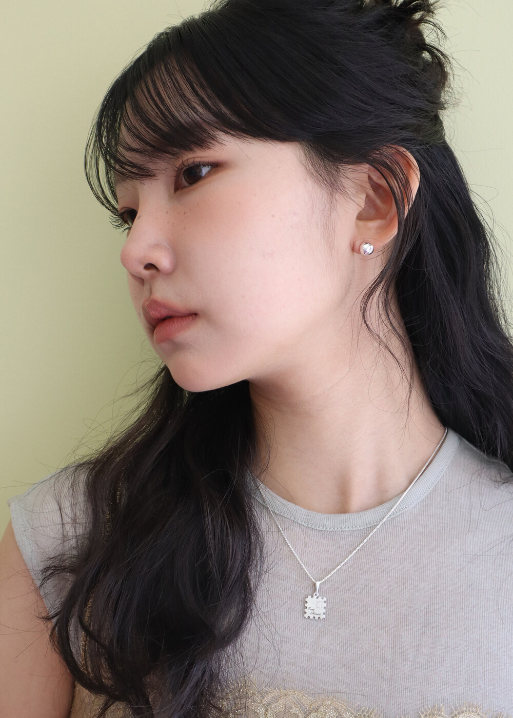모델은 귓볼이 얇고, 귀걸이 포인트가 비교적 아래쪽에 뚫린 귀 모양입니다. 이미지 참고 시 이 점 참고 부탁드립니다. :)