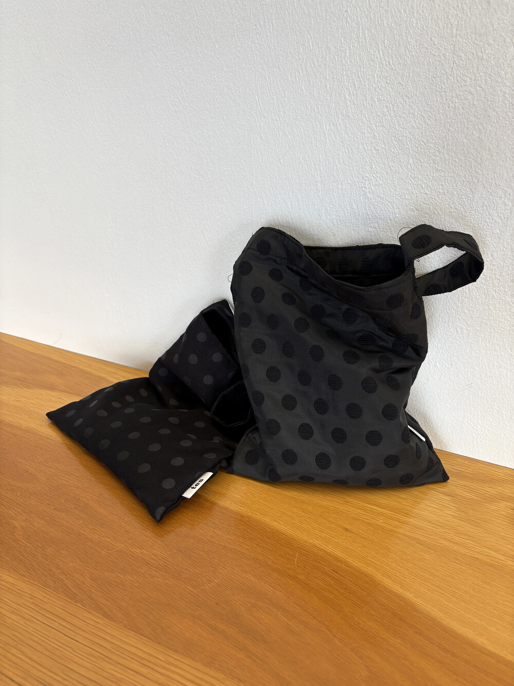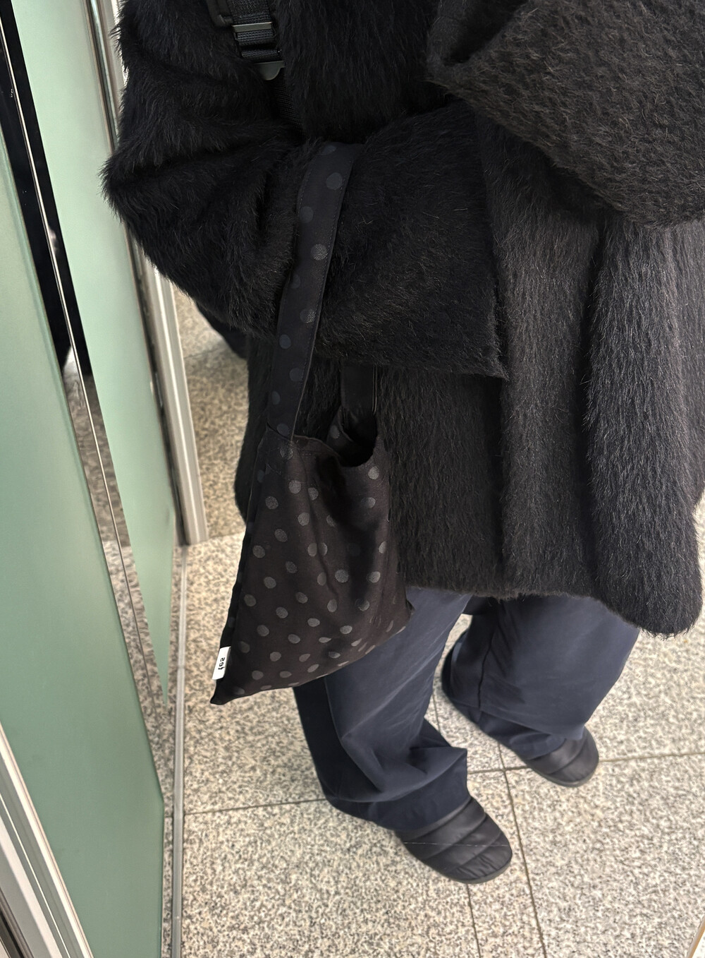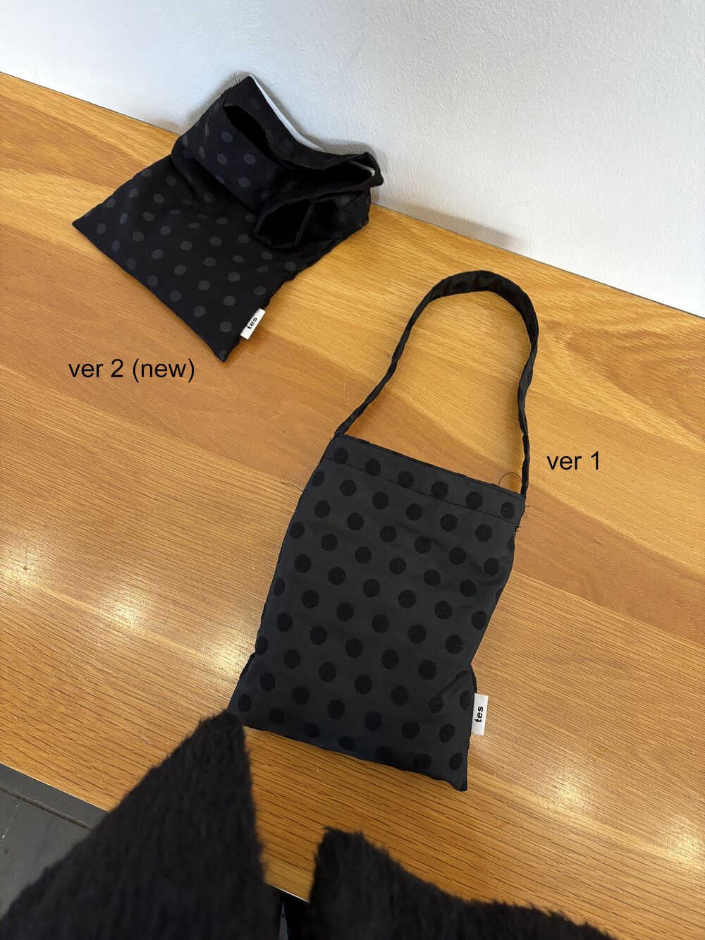 테스의 첫 번째 페브릭 가방 도트미니백 버전 2 입니다 :) 요즘 제가 잘들고 다니고, 필수로 챙겨 다녀야하는 물품들을 미니도트백에 넣어서 이용중이예요! 버전 1과는 다르게 평면적으로 좀더 크기가 작은 도트무늬가 특징이며 좀더 모노톤의 톤온톤 도트가있어서 좀더 데일리하답니다. 크기는 작아서 버전 1 과 동일하며 작은 미니 에코 서브백으로도 사용하실 수 있고 여행시 간단히 외출하실 때도 들기 좋아요.