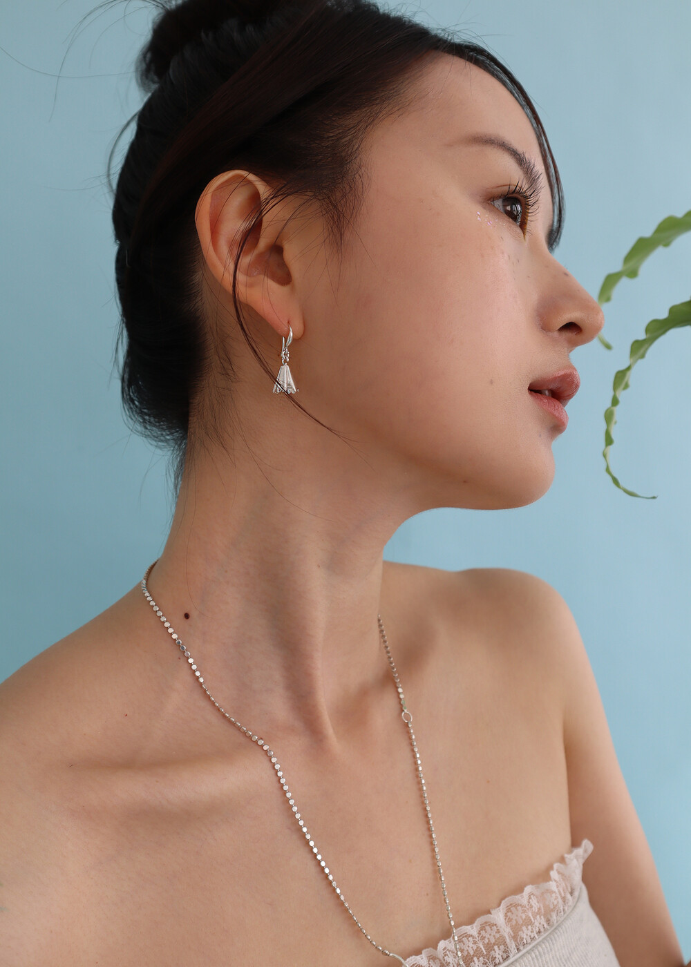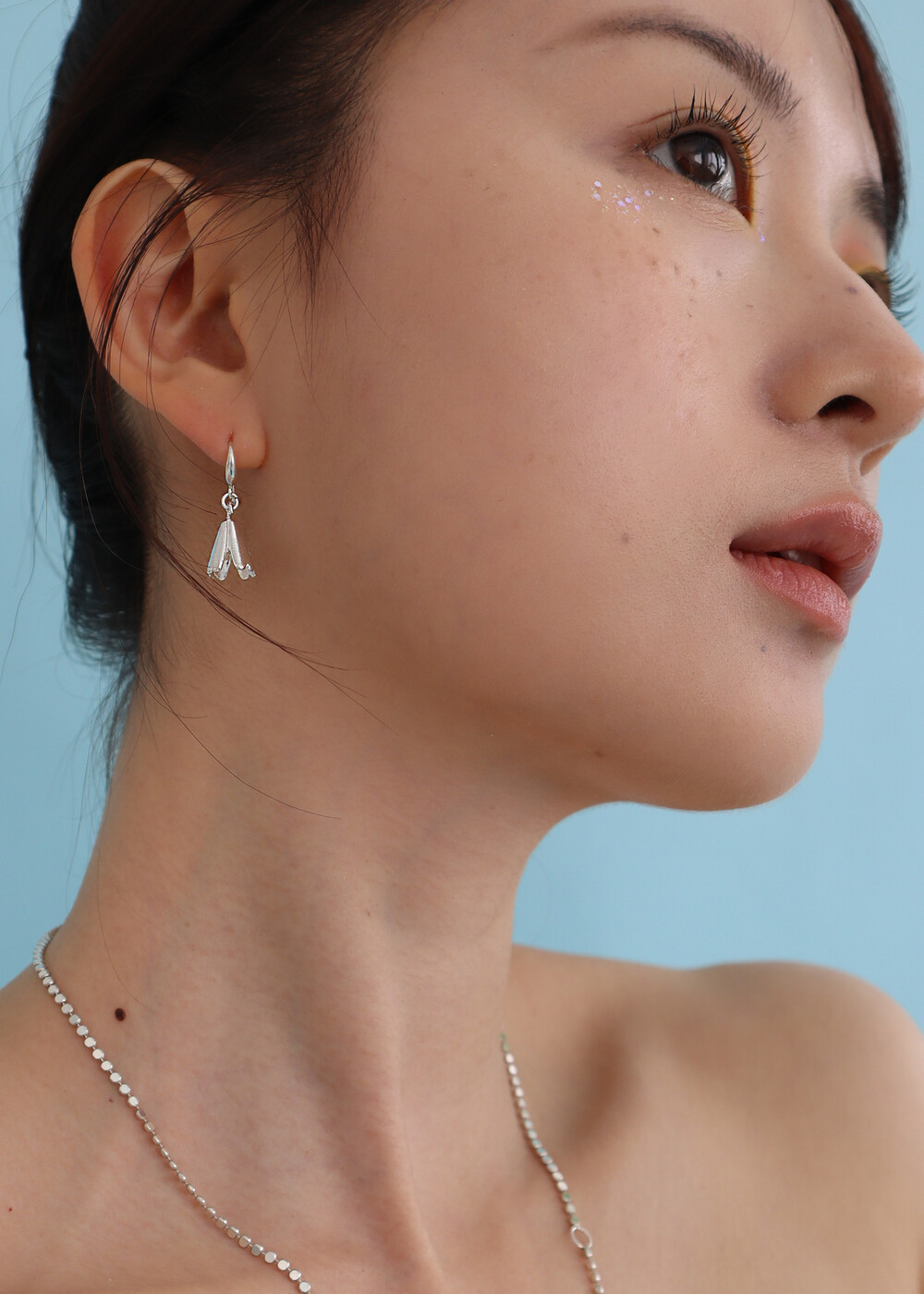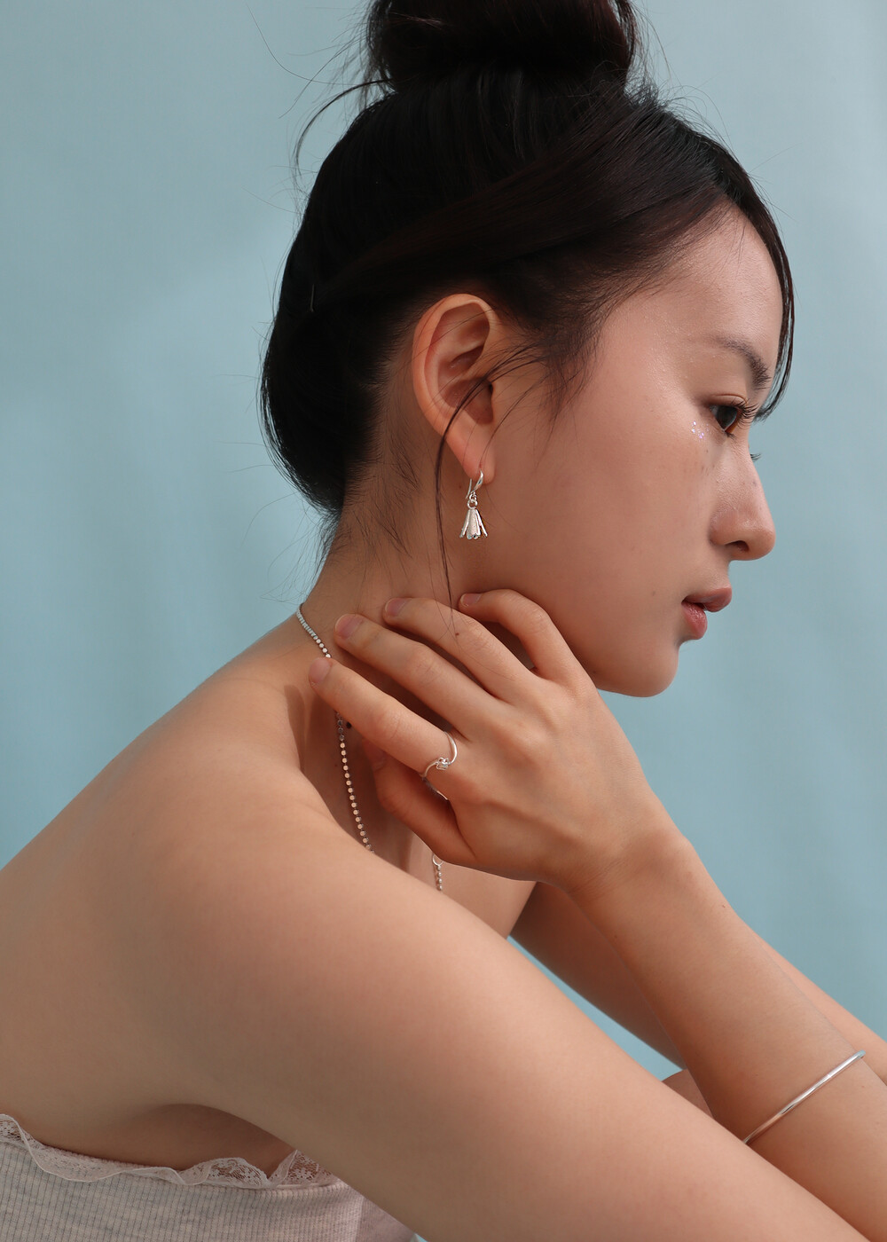 물방울 꽃의 형태에서 영감을 받아 제작된 사랑스러운 댕글 이어링입니다. 과하지 않은 팬던트의 크기로 봄여름 철 데일리한 착용이 가능합니다.
