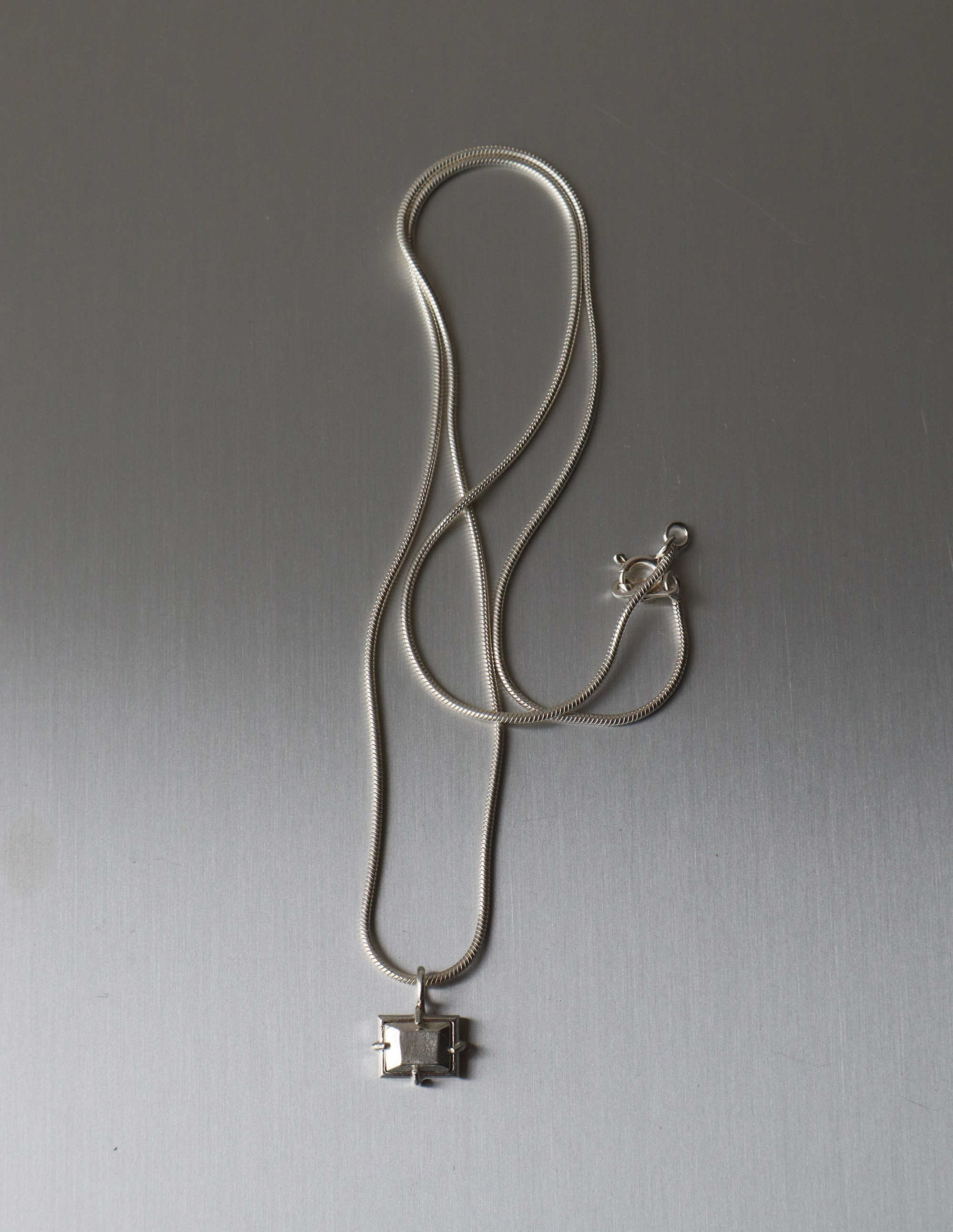 Pocket 시리즈의 목걸이는 실버 난집에 실버 사각 팬던트가 세팅된 디자인으로, 독특하면서도 섬세하고 세련된 무드를 담고 있습니다. 클래식한 감각이 느껴지는 제품으로 유행에 구애받지 않으며, 심플한 매력 덕분에 데일리하게 착용하기 좋습니다.