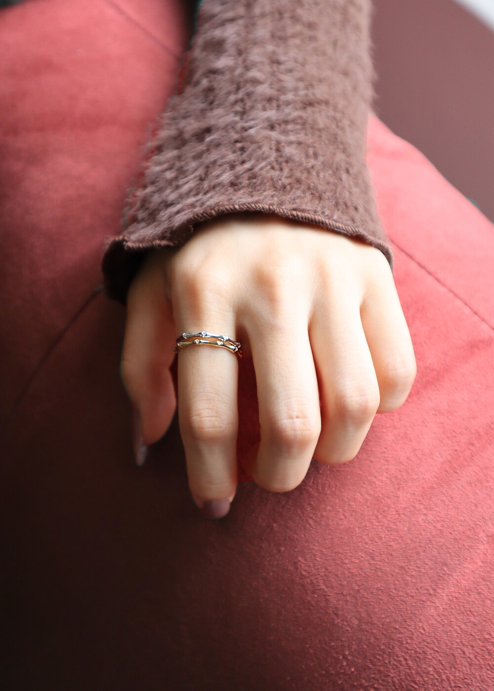 레이어드 하기 좋은 실반지로 마디반 지로도 활용가능합니다.