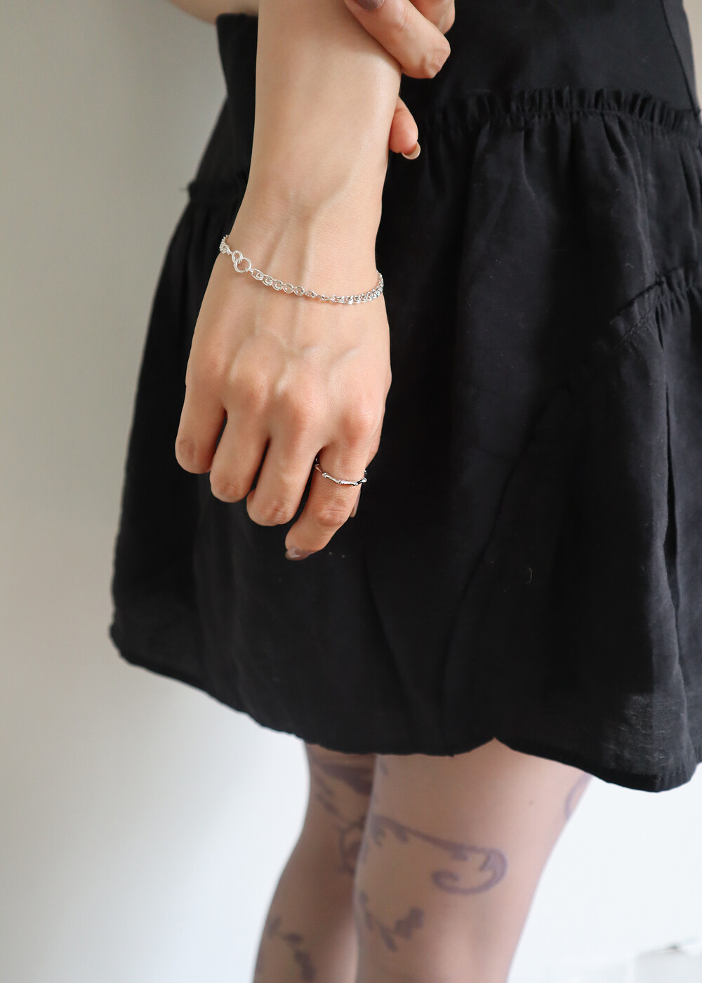 중간중간 화이트 큐빅이 박혀져 있는 세밀한 공정과정으로 두색상을 레이어링 하여 착용하셔도 좋습니다 :)