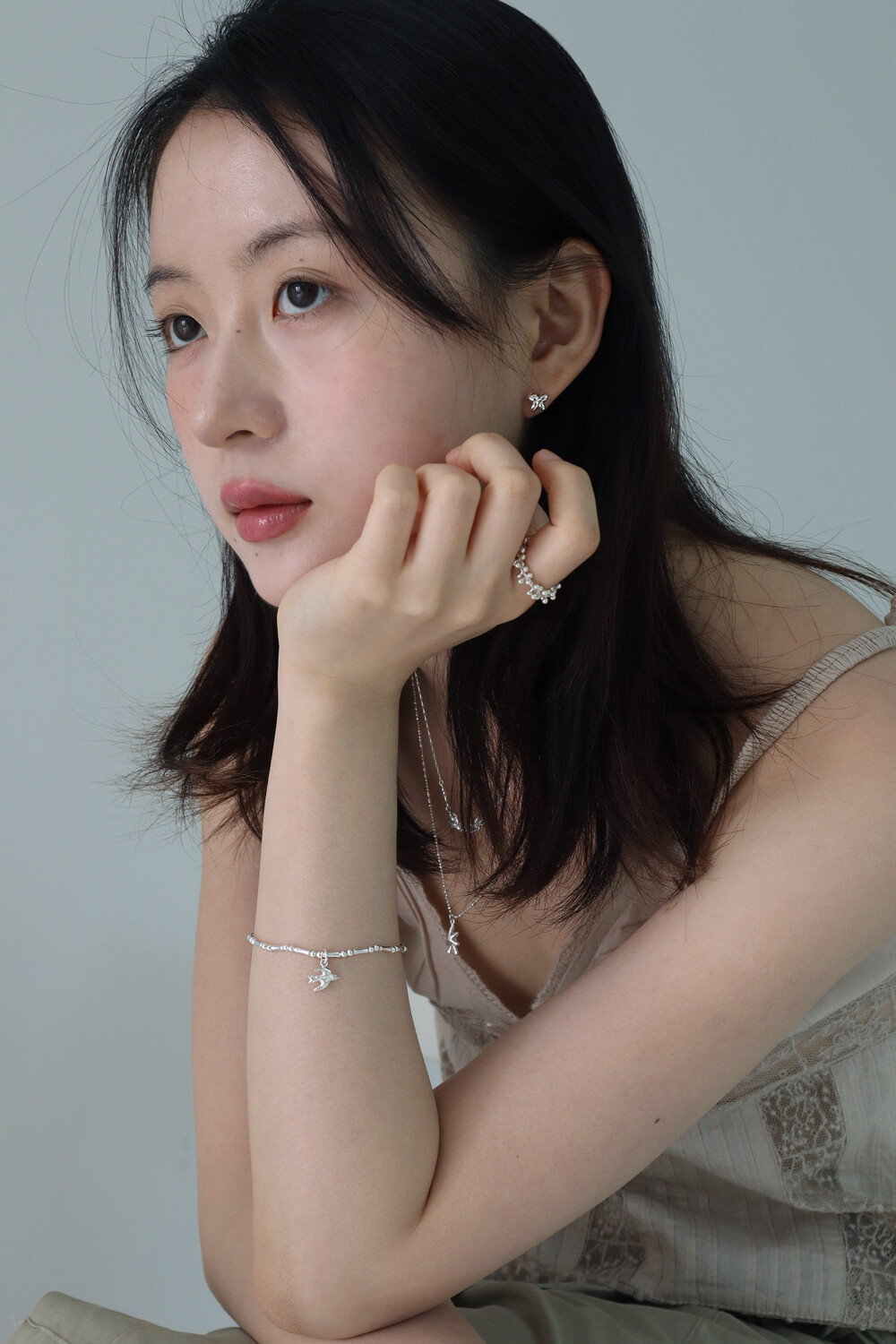 After care : 은 소재 (sterling silver)는 폴리싱천을 사용하시면 은 변색을 쉽게 제거 할 수 있습니다. 간단히 세척을 할 수 있는 방법으로는 치약을 미지근한 물에 희석후 부드러운 솔로 문질러주면서 닦아 주는 방법과 안쓰는 립스틱을 티슈나 부드러운 천에 묻힌 후 닦아주는 방법이 있습니다. 가장 좋은 방법으론 시증에 판매하는 은 전용폴리싱천을 이용하여 가볍게 닦아주시거나, 은/금 세척액에 담구어 사용하시는것을 추천드립니다.