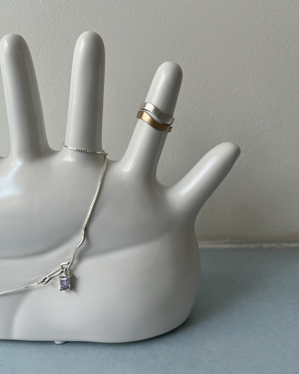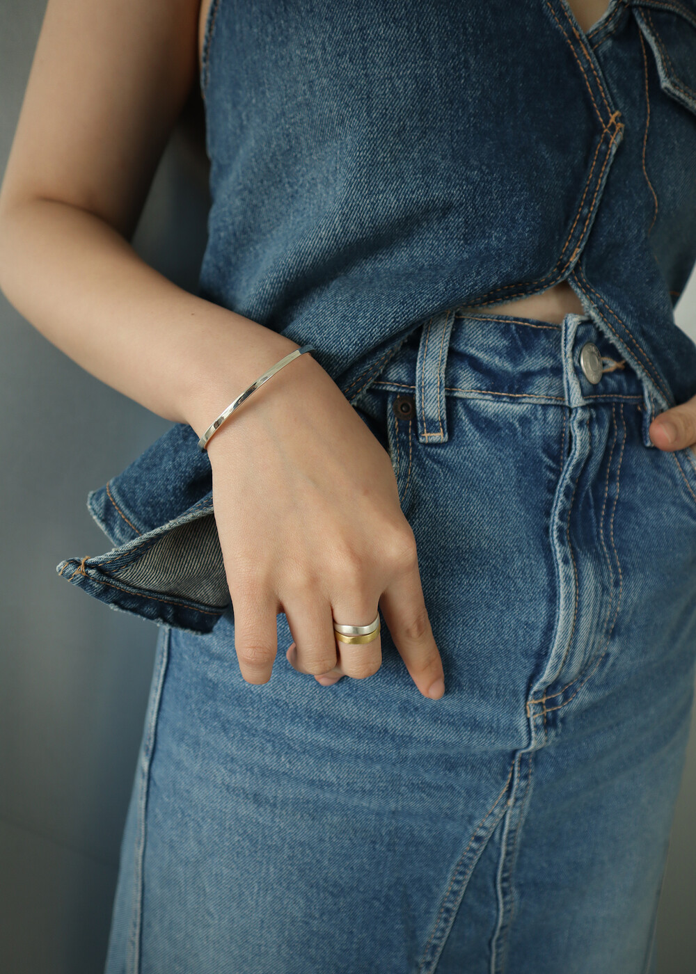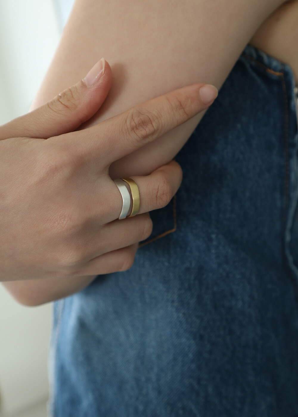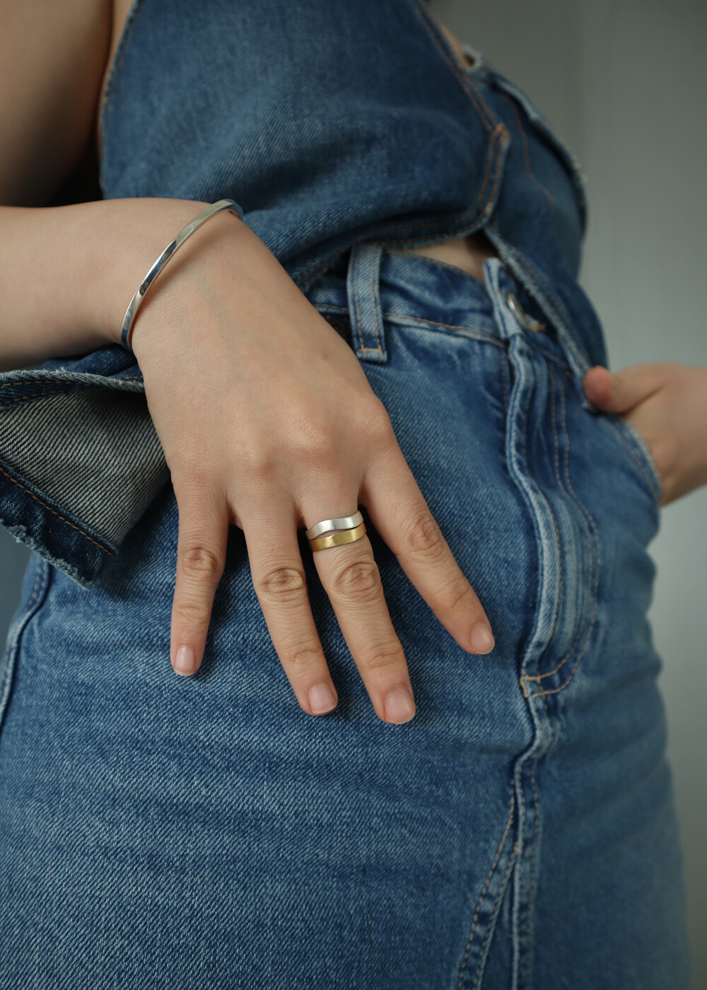 부드럽고 유연하며 비정형한 웨이브 모양을 띈 반지 입니다. 전체 무광의 폴리싱마감으로 고급스러운 은은한 빛을 가진 제품으로 단독 혹은 두개를 같이 레이어드 착용하셔도 어우러지는 데일리 링입니다.