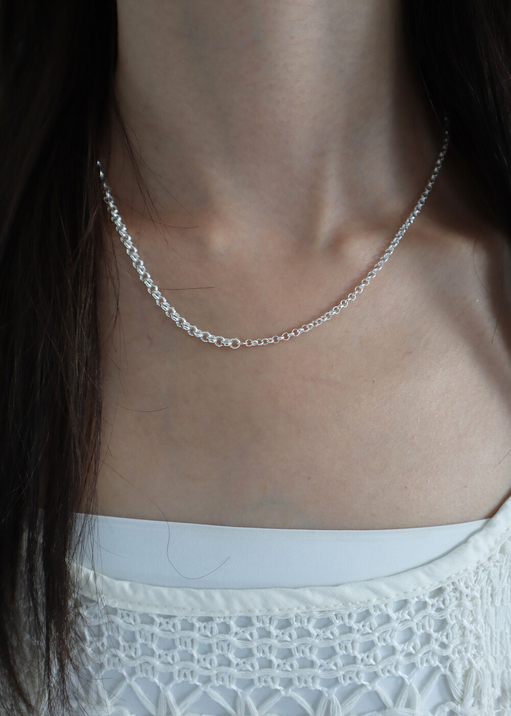 서로다른 두개의 굵기를 가진 bl 체인이 결합된 네크리스입니다. 볼드하고 중량감있는 목걸이로 너무 고급스럽고 무무드있게 느껴지는 아이템이예요! 목걸이 마감장식이 총알 볼 장식이라 착용하시기도 편하고, 마감장식을 중앙에 오게끔 착용하여 두가지의 다른 스타일링도 가능해서 저는 손이 많이가더라구요 :) 레이어드용으로도 좋지만 저는 단독으로 깔끔하게 착용했을때 더욱 매력적으로 느껴진 네크리스라 생각됩니다! 너무 강추해요...💗