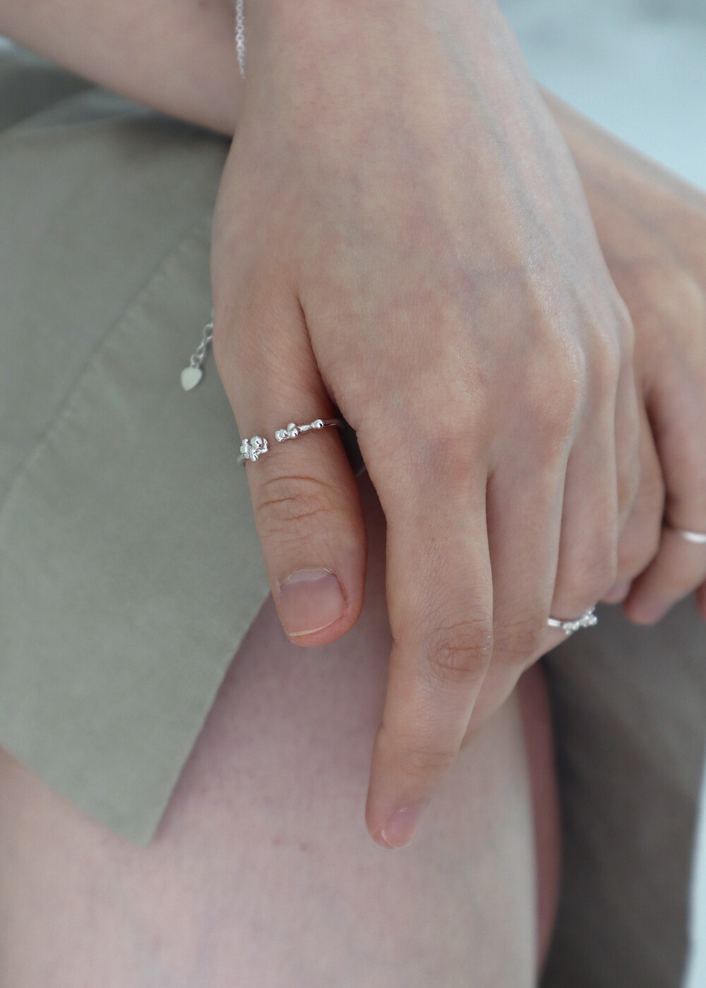 손가락 마디에 착용했을 때 가장 매력적인 실루엣을 연출할 수 있습니다. 손가락이 가는 분이라면 애끼링으로도 스타일링할 수 있어 다양한 연출이 가능한 아이템입니다.