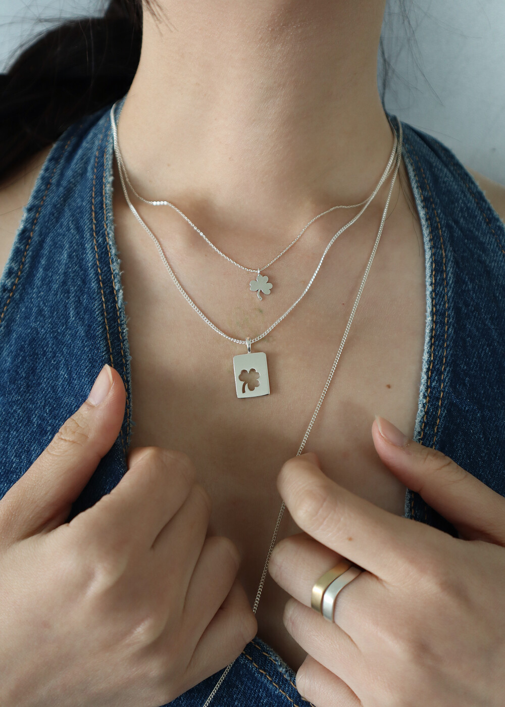 작고 앙증맞은 크기의 세잎클로버와 반짝이는 체인으로 목걸이를 보는 순간마다 행복해지실 거예요!