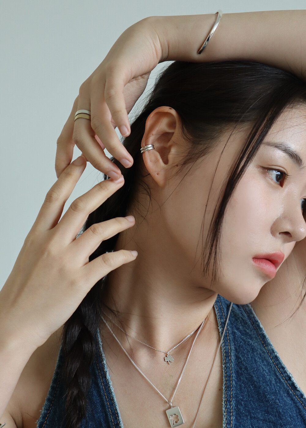 After care : 은 소재 (sterling silver)는 폴리싱천을 사용하시면 은 변색을 쉽게 제거 할 수 있습니다. 간단히 세척을 할 수 있는 방법으로는 치약을 미지근한 물에 희석후 부드러운 솔로 문질러주면서 닦아 주는 방법과 안쓰는 립스틱을 티슈나 부드러운 천에 묻힌 후 닦아주는 방법이 있습니다. 가장 좋은 방법으론 시증에 판매하는 은 전용폴리싱천을 이용하여 가볍게 닦아주시거나, 은/금 세척액에 담구어 사용하시는것을 추천드립니다.