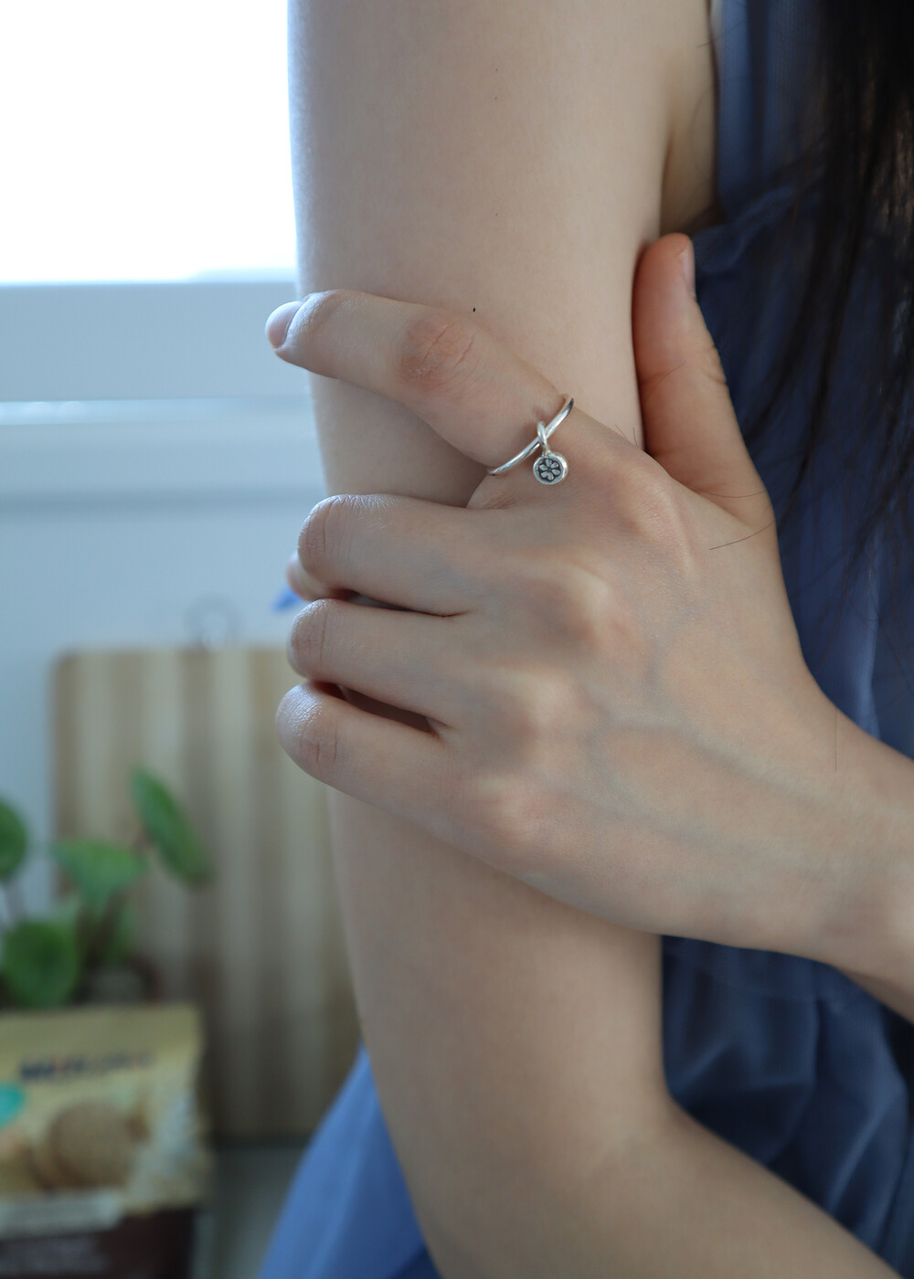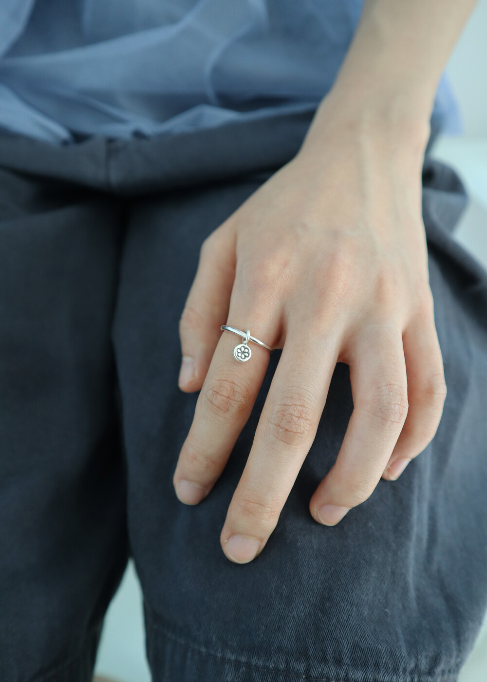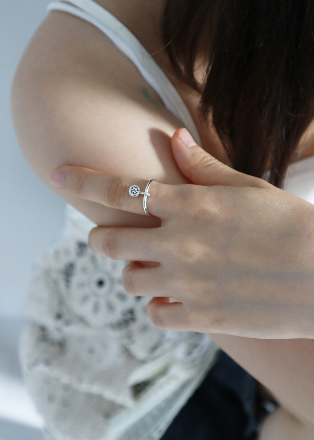 작은 데이지 문양이 콕 박힌 빈티지스러운 느낌의 링입니다. 참이 움직이는 제품으로 원하시는 위치에 유동적으로 맞추어 착용하실 수 있어요 :)