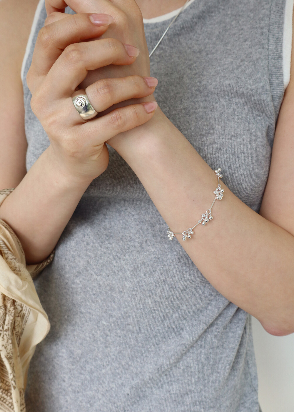 소재의 차이 이며, 발매된 기존제품과 디자인&제작 방식 등은 모두 동일합니다. 모델컷은 실버 925 소재로 촬영되었으며 브라스와 실버 컬러감은 맨마지막장 사진으로 참고 부탁드립니다