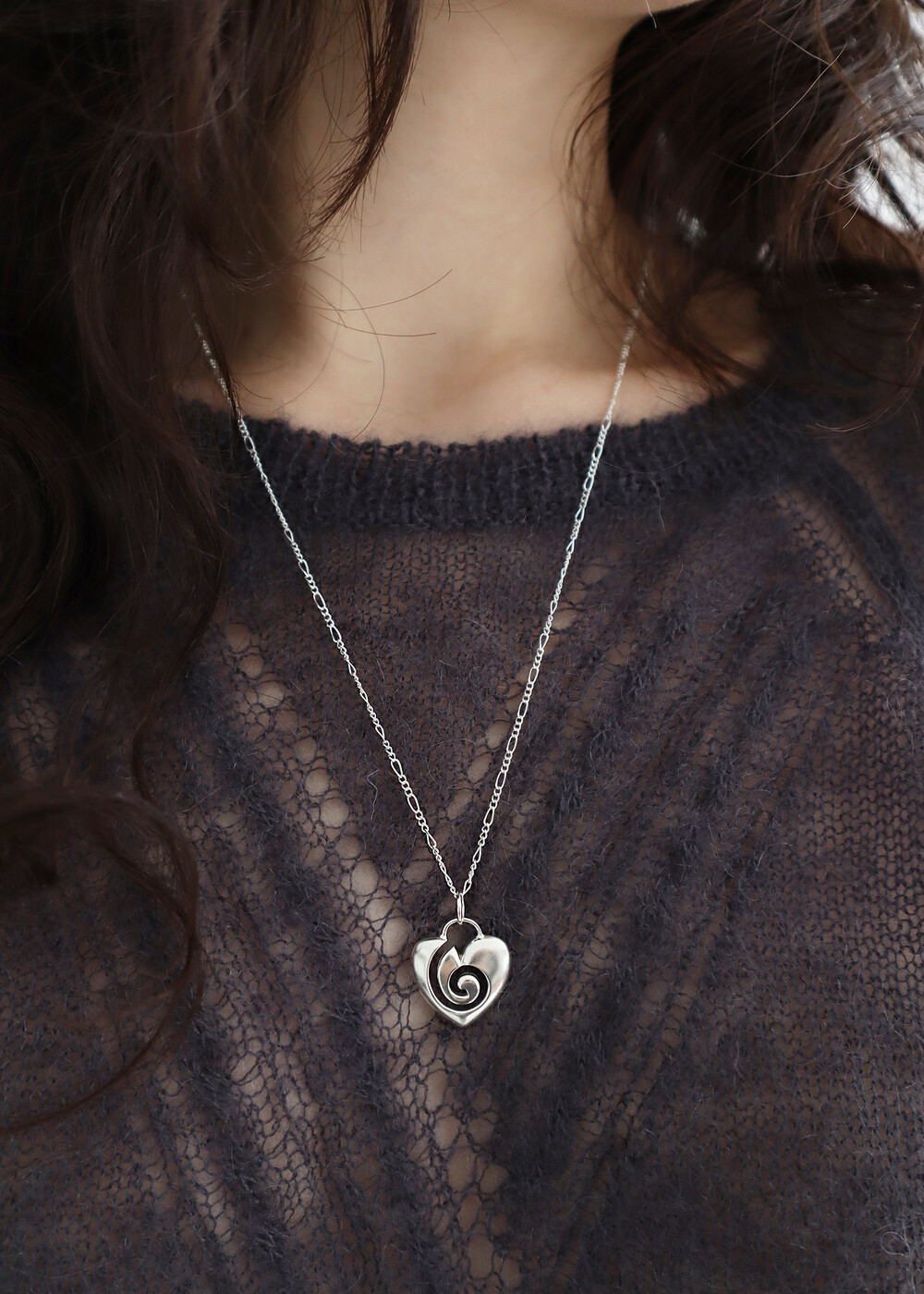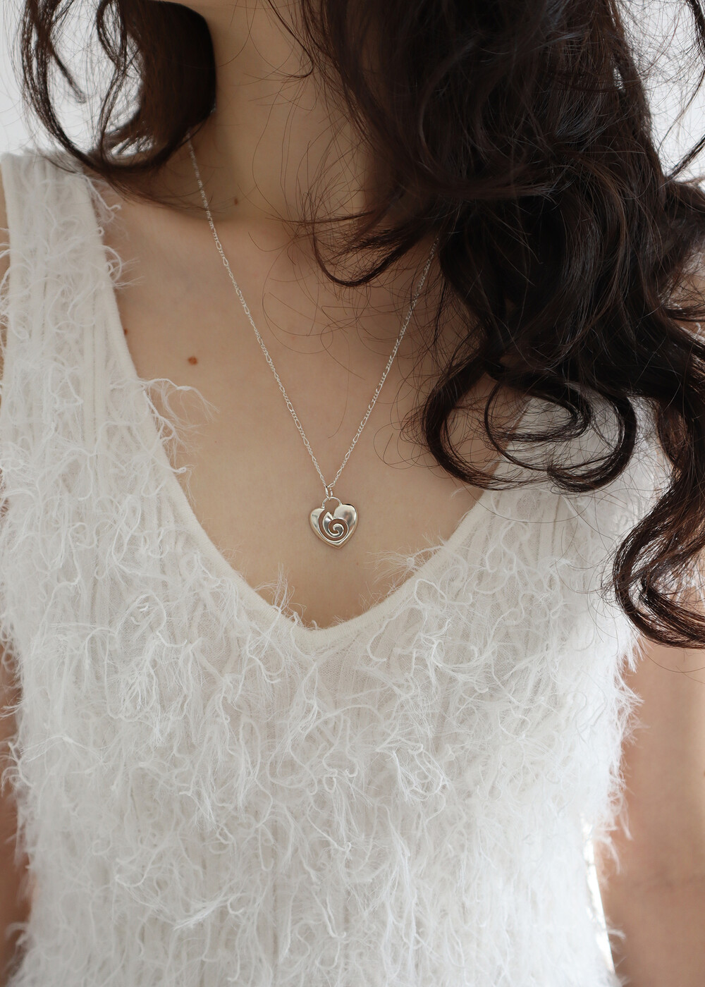 이번 22 holiday 자사몰 단독 제품으로 제작된 러브 네크리스는 는 회오리 무늬가 들어간 하트로 여러 겨울 상의와 매치하시기 좋은 연말 아이템 입니다.