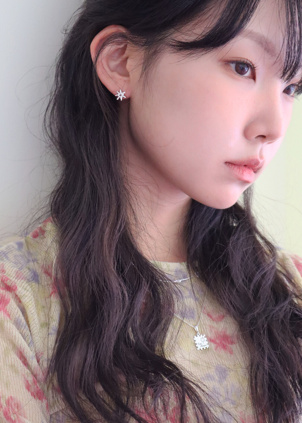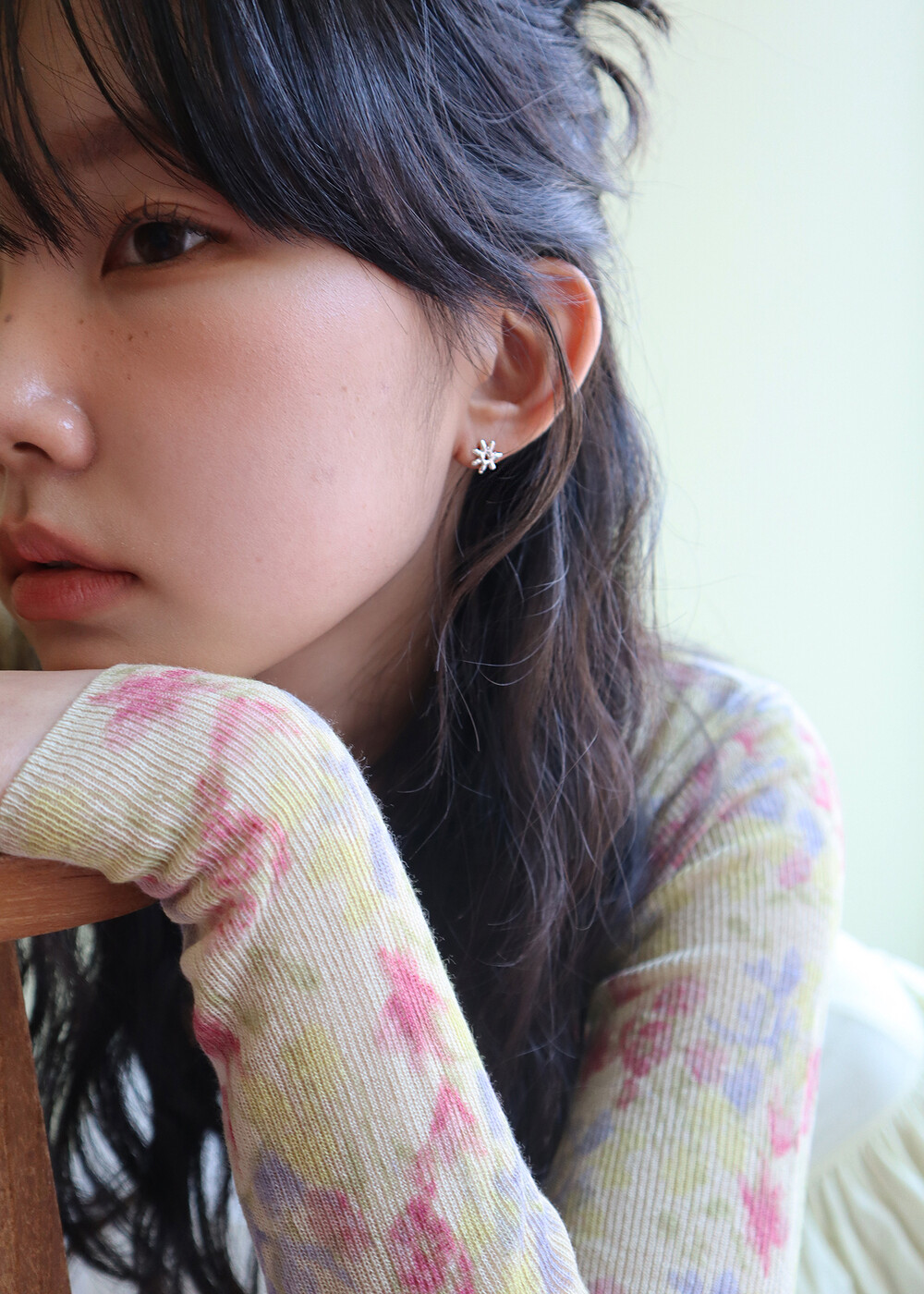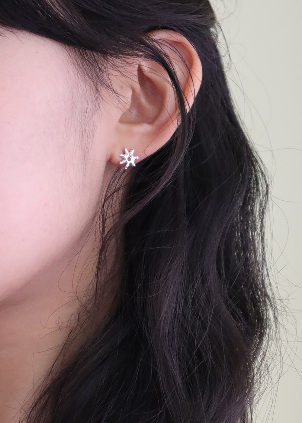 모델은 귓볼이 얇고, 귀걸이 포인트가 비교적 아래쪽에 뚫린 귀 모양입니다. 이미지 참고 시 이 점 참고 부탁드립니다. :)