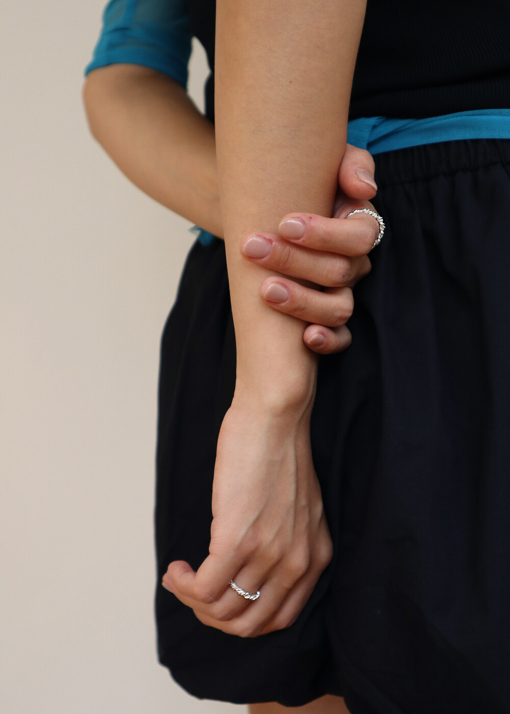 원사이즈의 링으로 레이어드하시기 좋은 두께와 무게감으로 제작된 반지입니다. 뒤쪽오픈 된 부분을 조이고 늘려 4-12호까지 착용하실 수 있습니다 :)