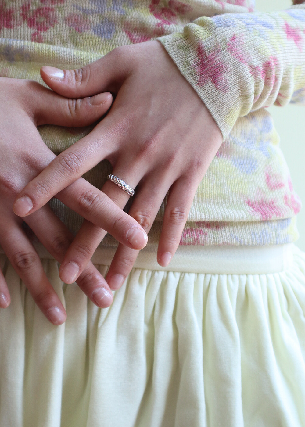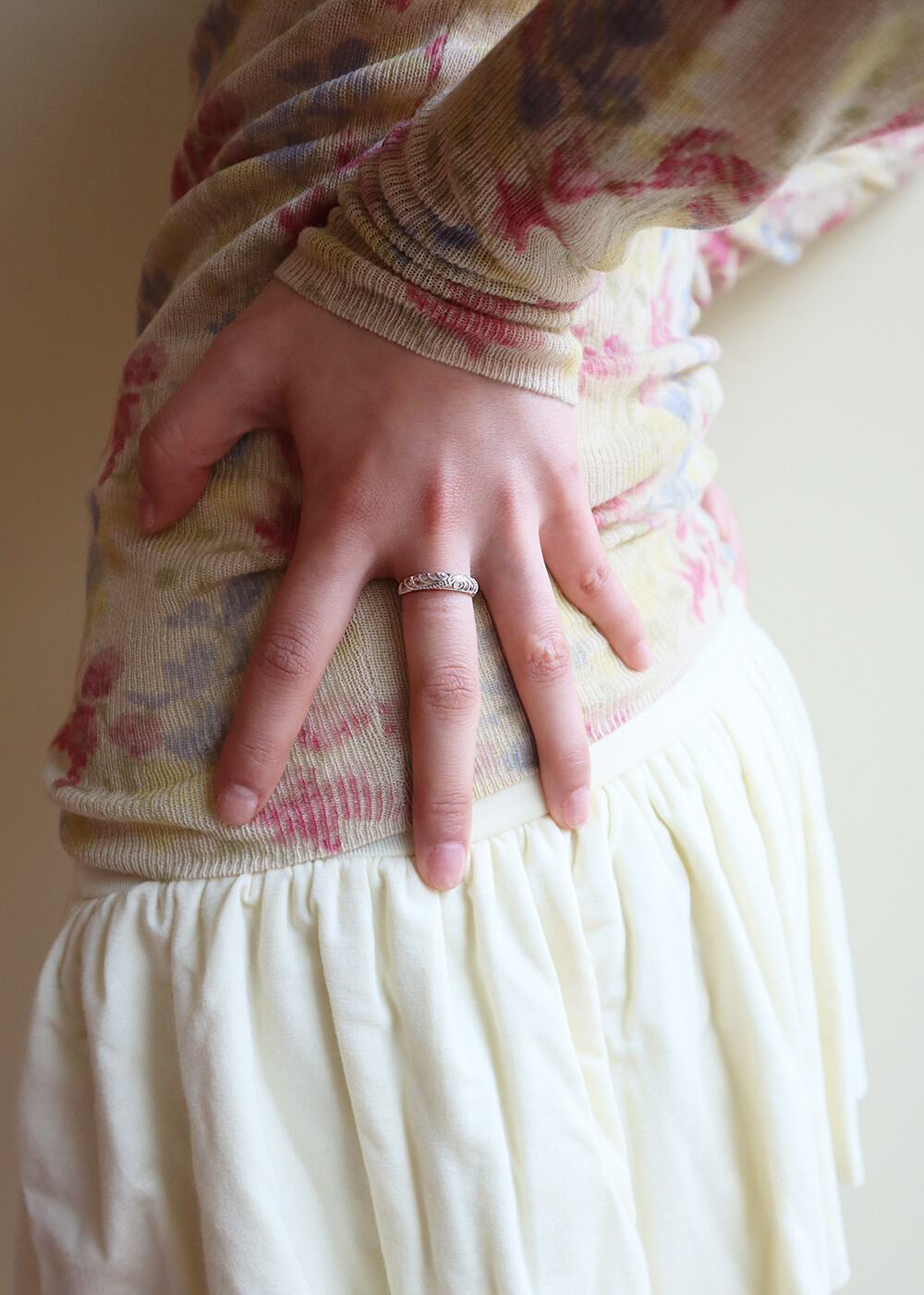 페미닌한 분위기를 살린 디자인으로단독 착용은 물론 레이어드 링으로도 자연스럽게 어우러집니다.