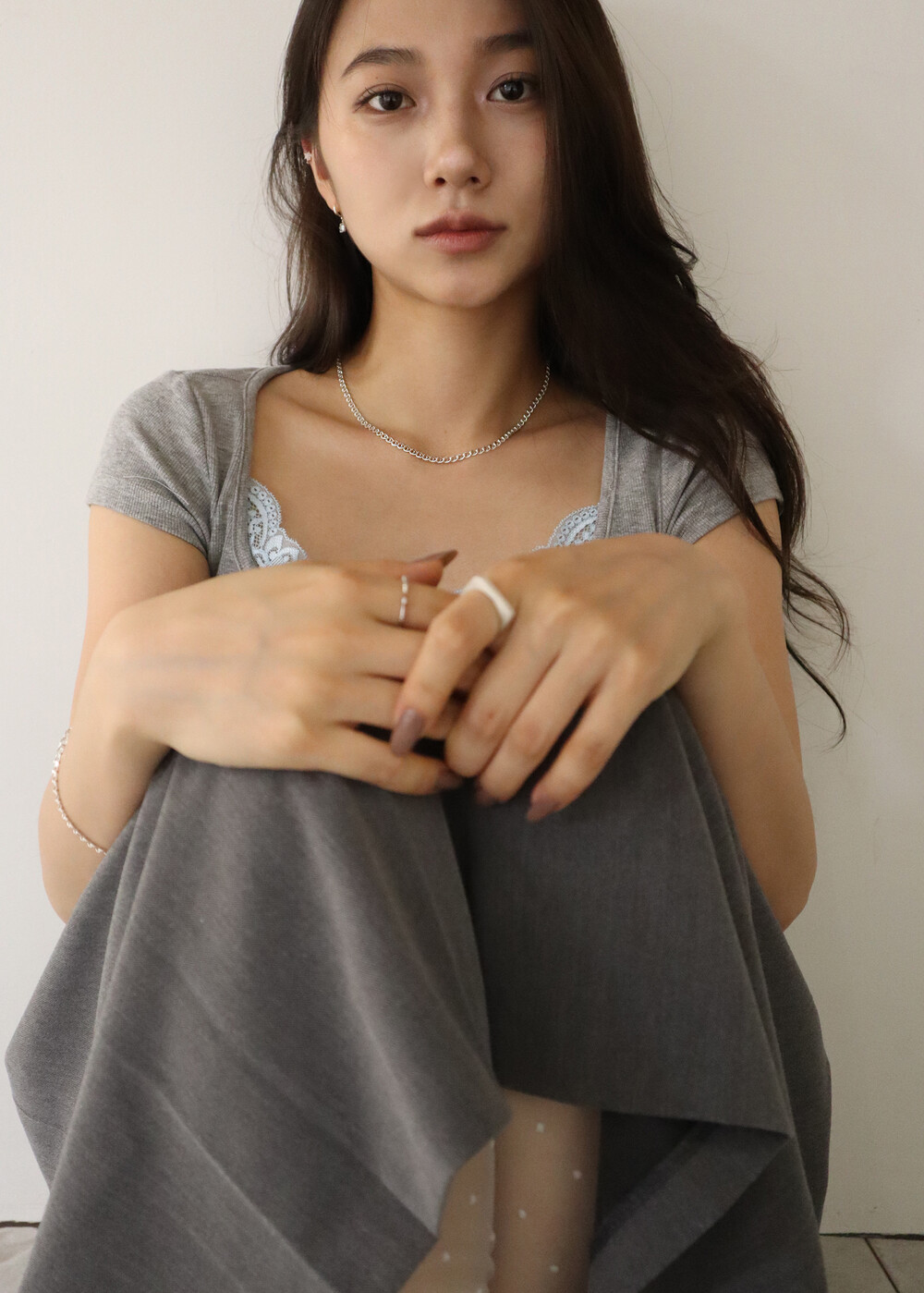 굽이치는 파도의 모양을 닮은 실버 면체인 네크리스 입니다. 레이어드로도 하기 좋은 두께감으로 데일리하게 자주 손이 가는 아이템으로 추천드립니다.