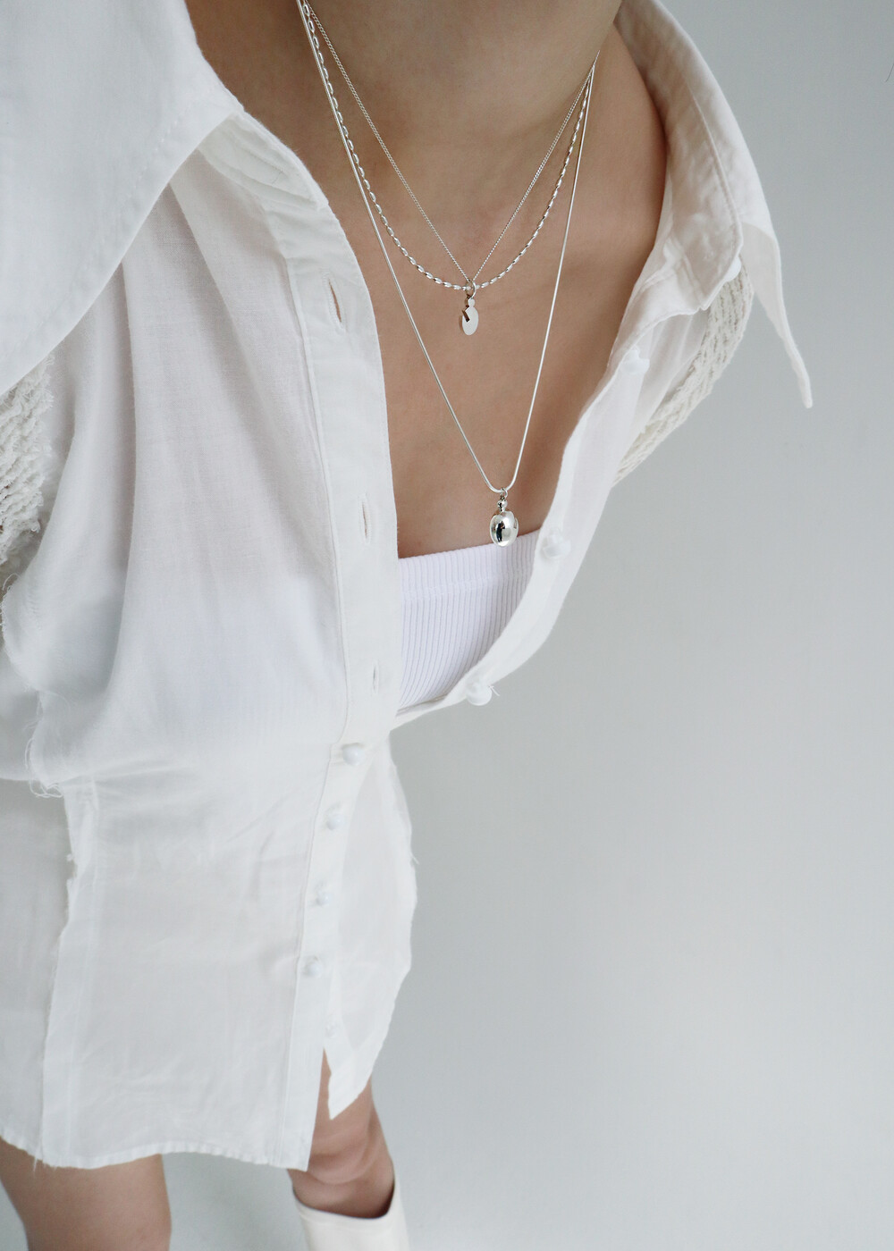 짧은 기장감의 네크리스 입니다. 체인의 길이를 늘려 착용을 원하시는 분은 배송 시 요청사항 칸에 총 길이를 작성해 주세요.