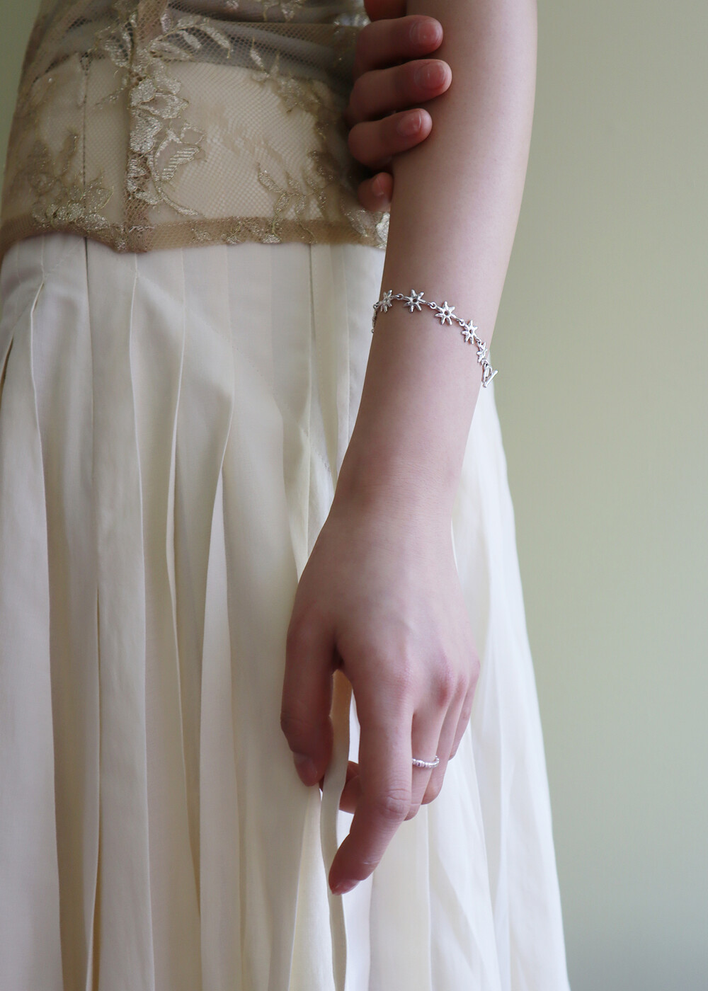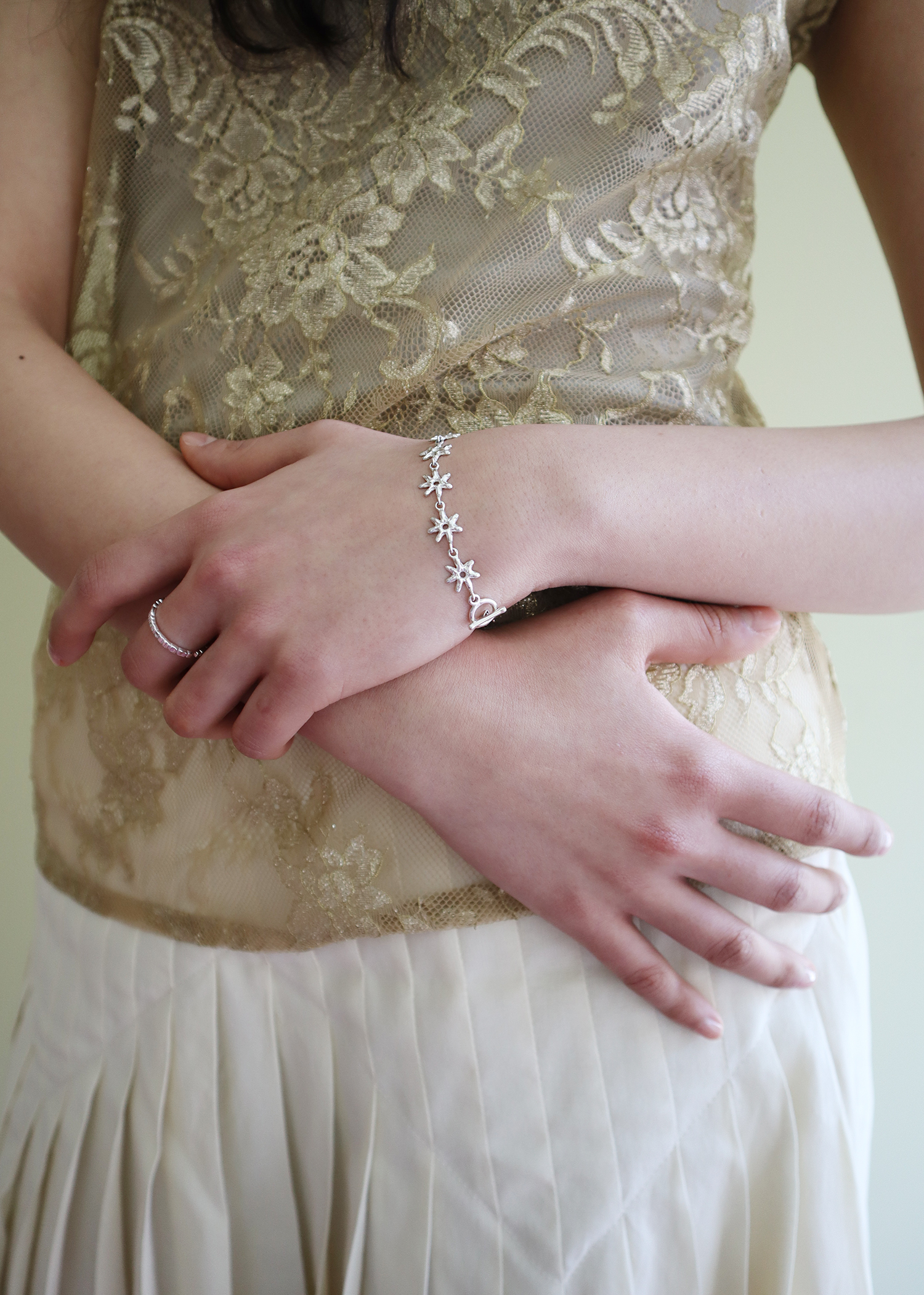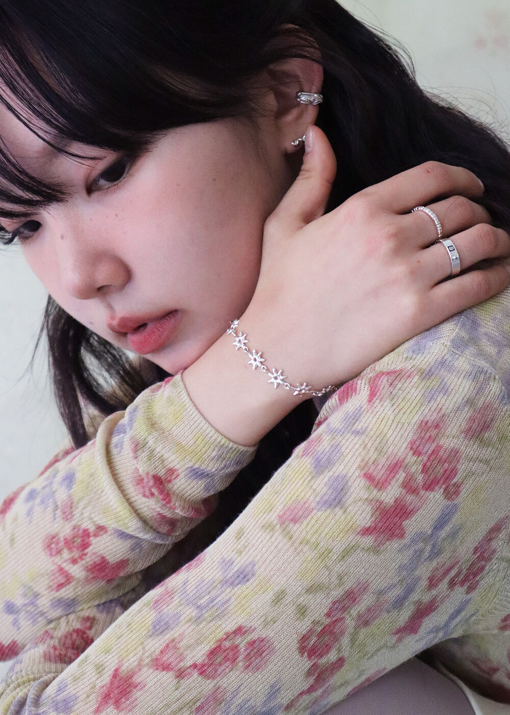 봄날 피어나는 꽃을 모티브로 제작된 Blossom Bracelet입니다.핸드메이드 감성이 느껴지는 디자인으로화사하면서도 키치한 매력이 돋보입니다. 펜던트 위치에 따라 길이 조절이 가능해손목에 맞게 다양한 스타일로 착용할 수 있습니다.
