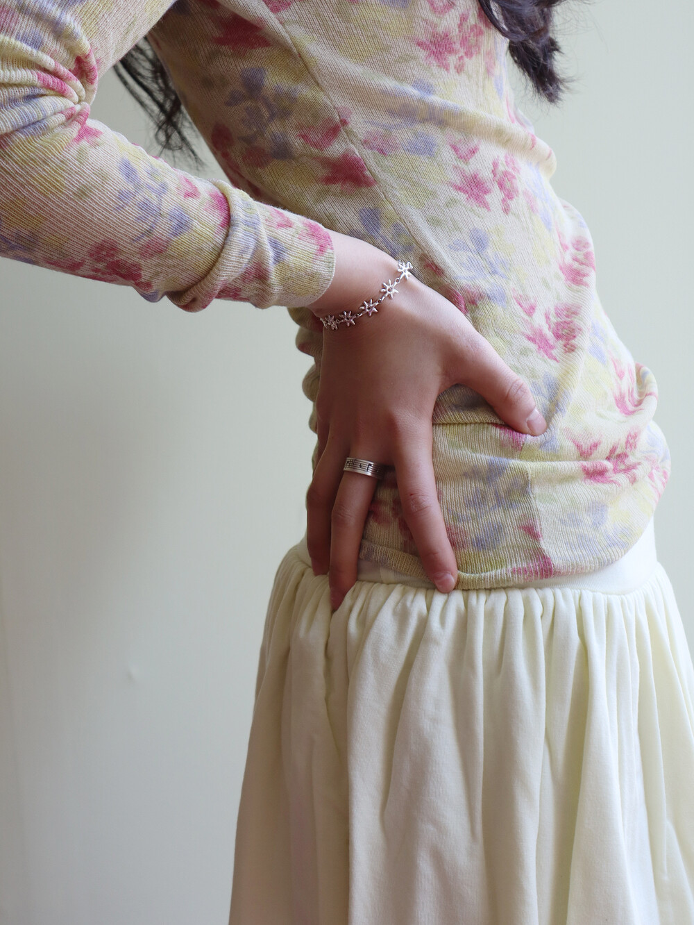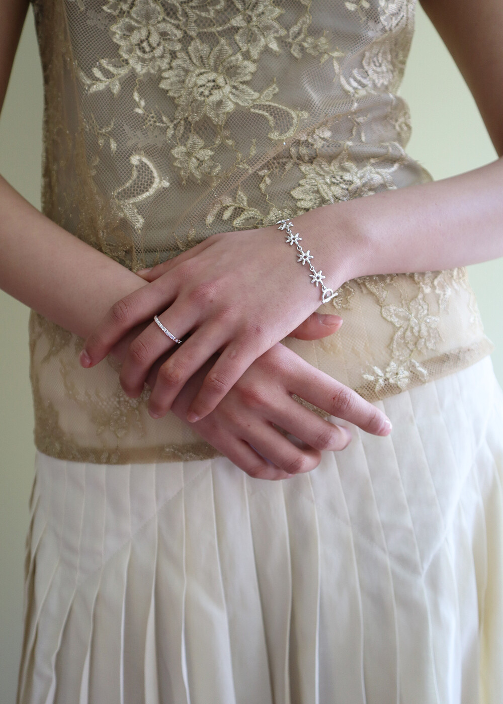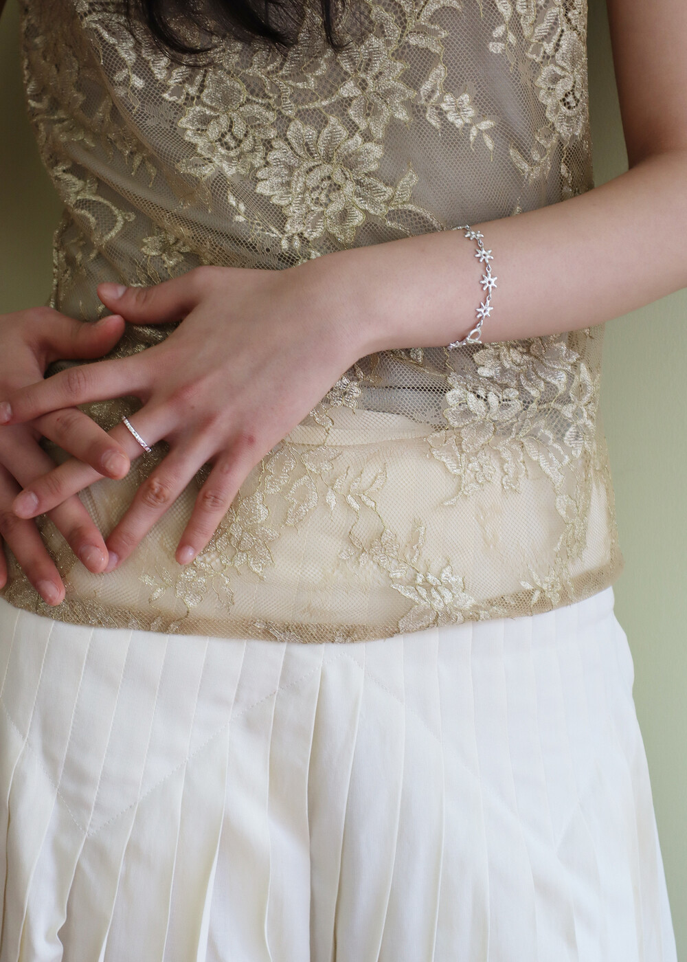 봄날 피어나는 꽃을 모티브로 제작된 Blossom Bracelet입니다.핸드메이드 감성이 느껴지는 디자인으로화사하면서도 키치한 매력이 돋보입니다. 펜던트 위치에 따라 길이 조절이 가능해손목에 맞게 다양한 스타일로 착용할 수 있습니다.