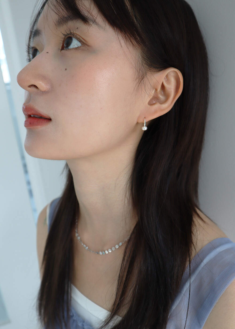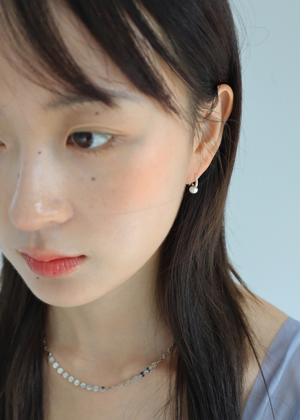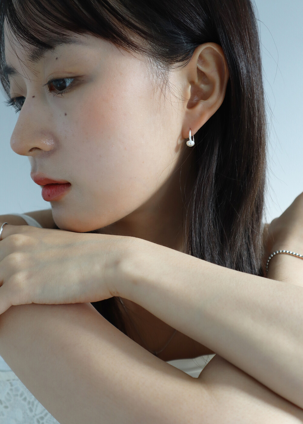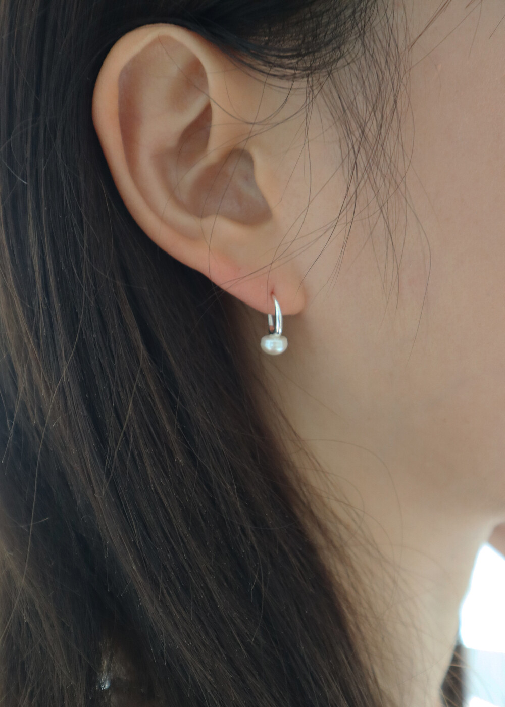 실제 담수진주가 결합된 후크형 이어링 입니다. 개개인의 귀뚫은 위치와 귓볼 두께에 따라 딱 붙기도, 모델 처럼 조금 여유가 남는 느낌이 날 수 있습니다. 제 귀 뚫은 위치에는 귓볼 밑에 딱 달라붙어서 더 고급지고 독특한 쉐입으로 느껴져서 좋았습니다 :) 단조롭지만 우아한 매력을 느끼실 수 있을거예요💗