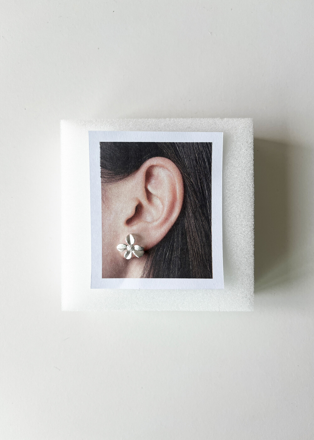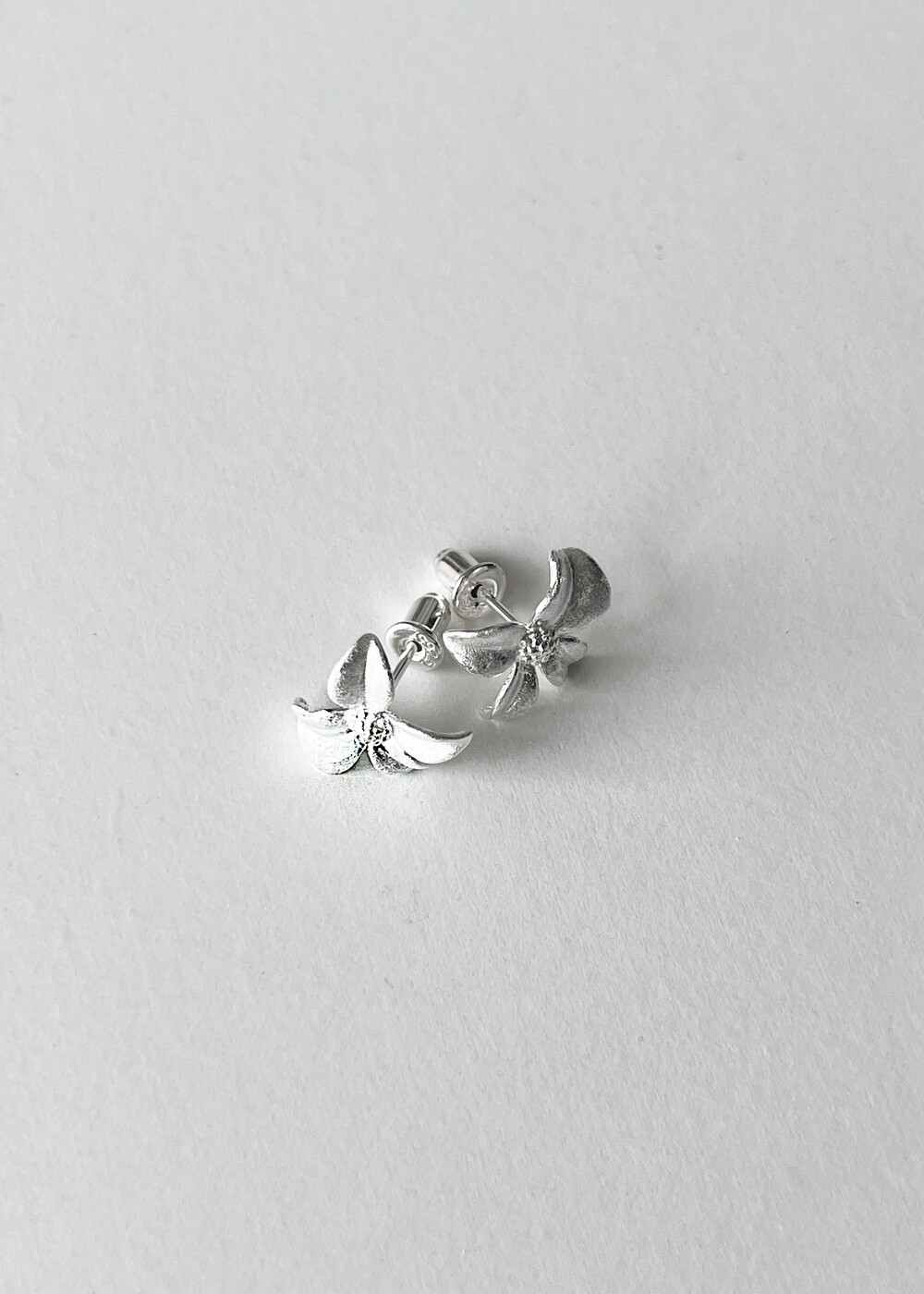 백합의 아름다운 곡선을 그대로 따와 제작된 릴리 이어링입니다. 자잘한 펄 같은 텍스쳐로 마감되어 더욱 고급스럽고 매력적입니다. 뽀얀 은 빛의 화사함이 그대로 반영된 이어링으로 올 여름 바캉스 룩에 추천드려요:) 자연물인 꽃모양으로 방향과 각도를 원하시는 모양으로 돌려가며 착용하실 수 있어요. 언발란스 이어링 제품으로도 착용가능해요.