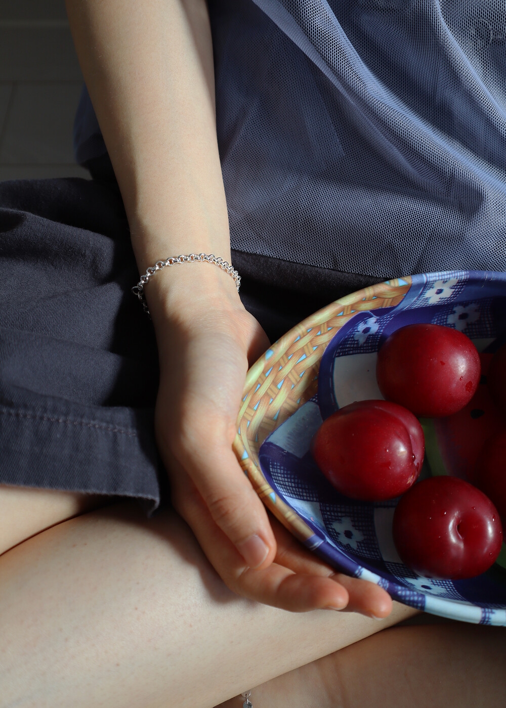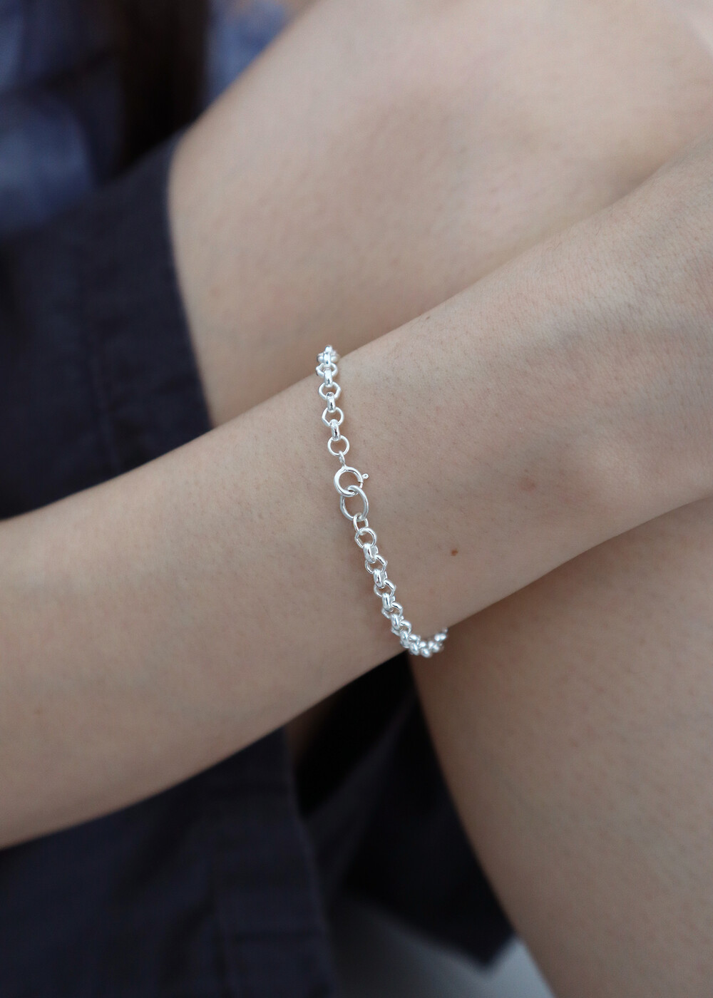 볼드한 bl 체인이 매력적인 팔찌입니다. 여름철 레이어드용으로 적합하고 굵은 체인이 심플하게 어느룩이던 편한 착용을 할 수 있는 아이템이예요 :)
