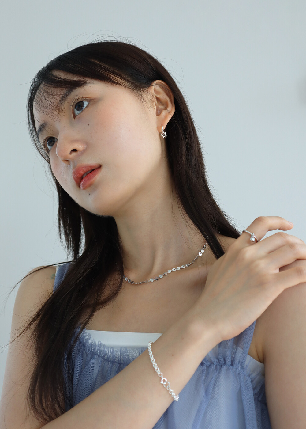 After care : 은 소재 (sterling silver)는 폴리싱천을 사용하시면 은 변색을 쉽게 제거 할 수 있습니다. 간단히 세척을 할 수 있는 방법으로는 치약을 미지근한 물에 희석후 부드러운 솔로 문질러주면서 닦아 주는 방법과 안쓰는 립스틱을 티슈나 부드러운 천에 묻힌 후 닦아주는 방법이 있습니다. 가장 좋은 방법으론 시증에 판매하는 은 전용폴리싱천을 이용하여 가볍게 닦아주시거나, 은/금 세척액에 담구어 사용하시는것을 추천드립니다.