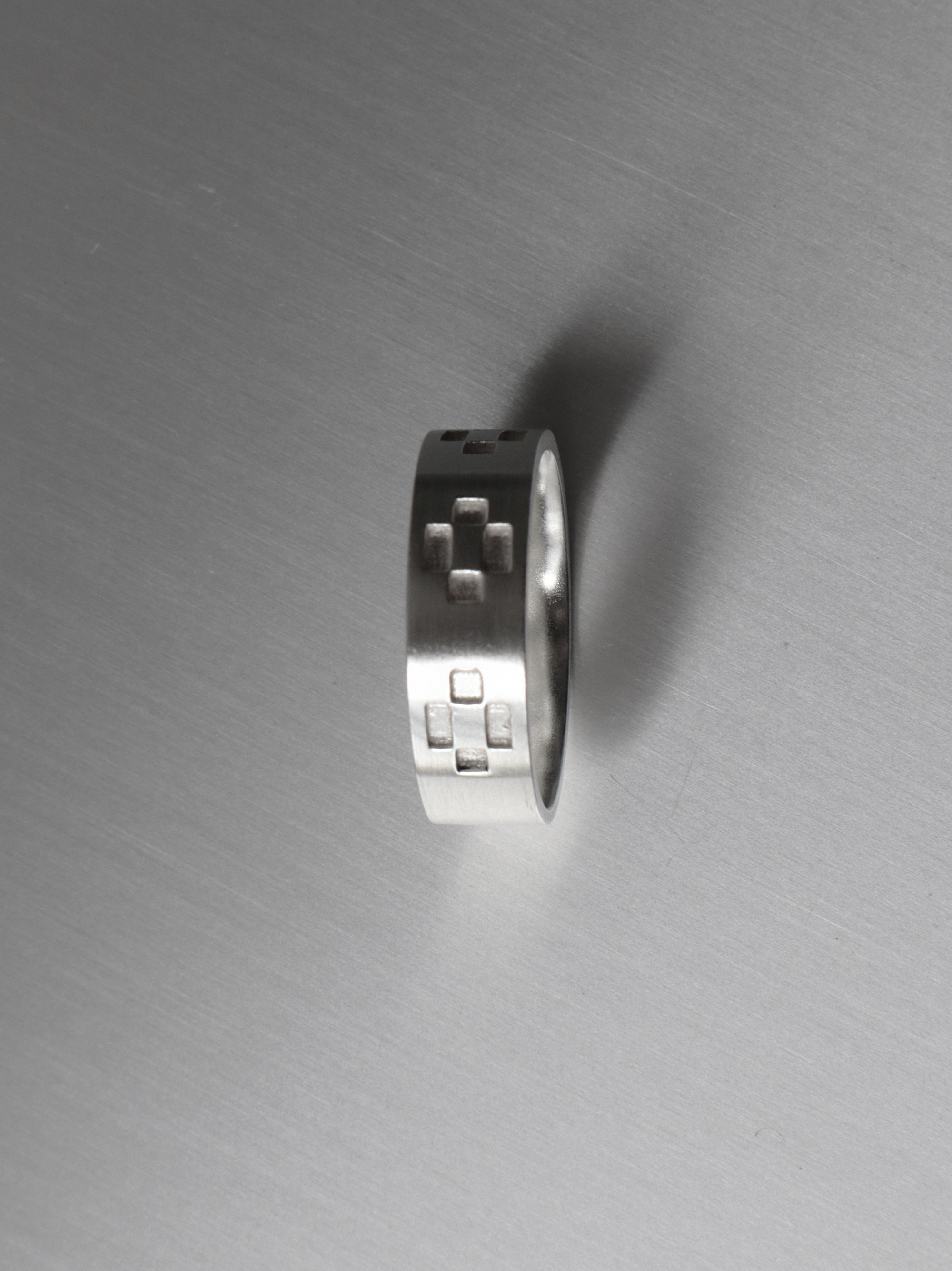 Pocket 반지는 남녀 구분 없이 착용 가능한 유니섹스 패턴 링입니다. 깊게 새겨진 사각 패턴이 특징으로, 시간이 지날수록 착용자의 생활 흔적이 더해지며 자연스러운 에이징 효과가 나타납니다. 그 과정에서 빈티지한 무드와 유니크한 멋을 동시에 즐길 수 있는 반지입니다.