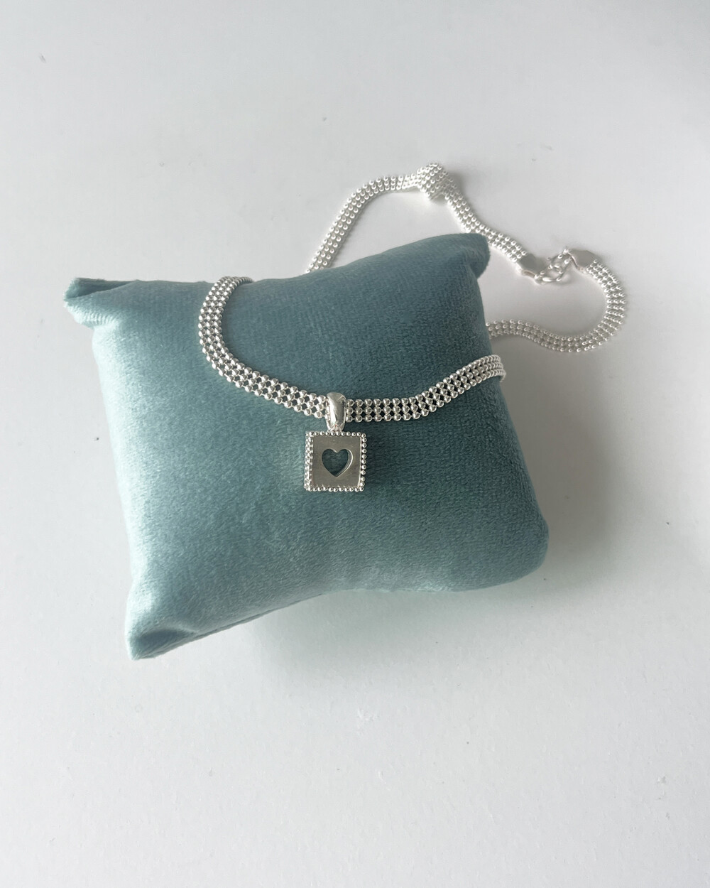 할머니의 오래된 서랍속 작은 하트 빈티지 팬던트에서 영감을 받아 재해석 하여 제작된 팬던트 목걸이 입니다.세련된 실버 체인으로 쵸커처럼 짧게 착용하면 더욱 멋스러워요