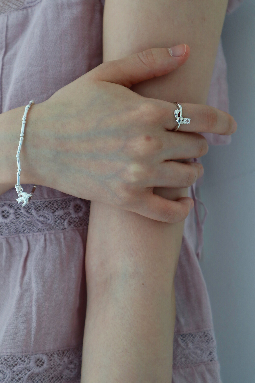슈팅스타 링은 밤하늘을 가르며 지구로 떨어지는 별똥별에서 영감을 받아 탄생한 반지입니다.작은 아기 별똥별과 함께, 천연석인 토파즈를 세팅하여 더욱 특별한 의미를 담았습니다.염색이나 인공 후가공 없이, 자연 그대로의 색감을 간직한 토파즈는 은은한 화이트 속에 살짝 스며든 블루빛이 오묘하게 어우러지며,빛에 따라 달라지는 신비로운 분위기를 연출합니다.