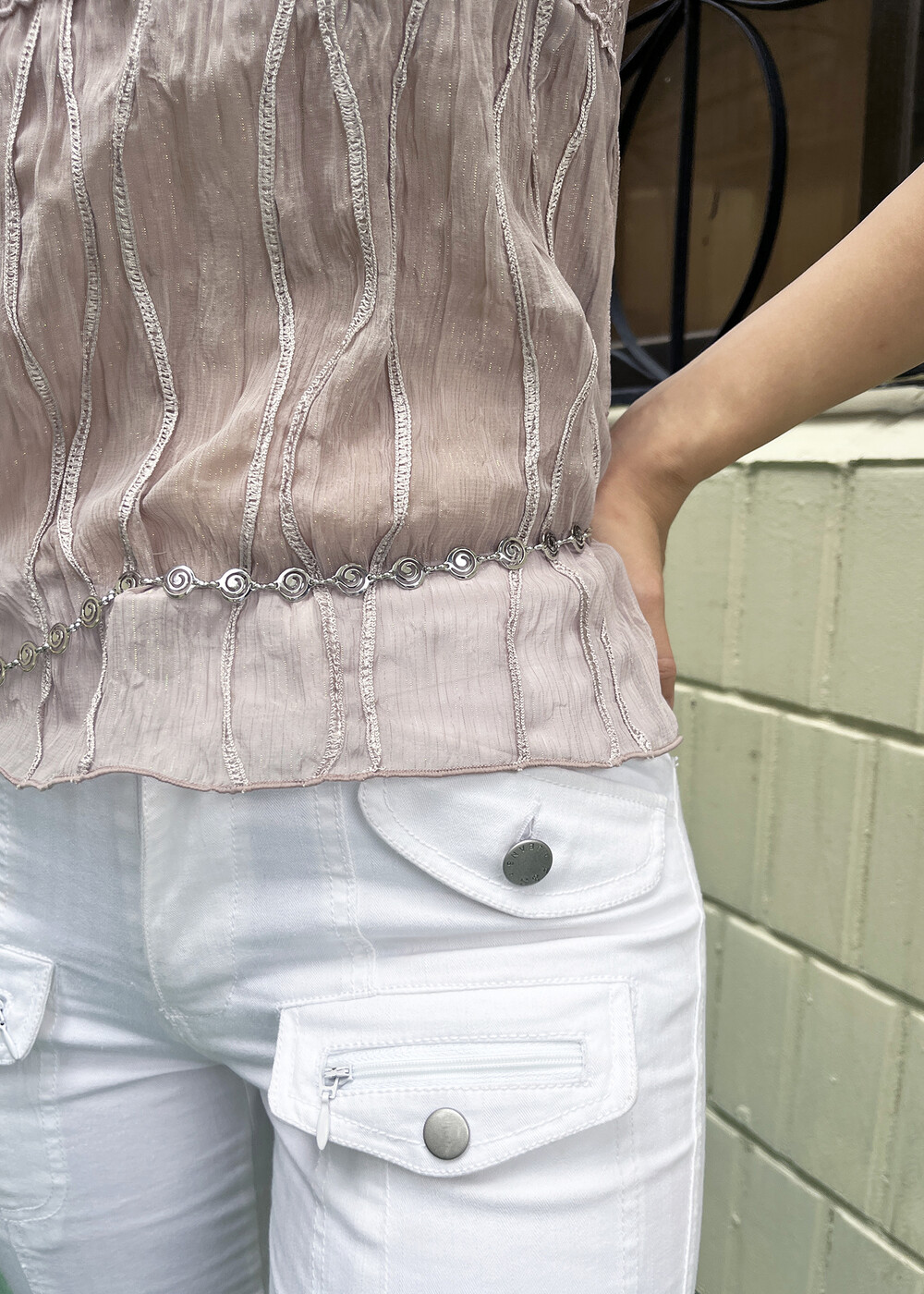 ์์ ํ์ค๋ฆฌ ๋ชจ์์ ํฌ๋ํธ๊ฐ ํ๋์ฉ ์ฐ๊ฒฐ๋ ์ฒด์ธ์ผ๋ก ์ฌ์ฌ๋ฆ ๋ค์ํ๊ฒ ์ฐฉ์ฉ๊ฐ๋ฅํ ๋ฒจ๋ฆฌ ์ฒด์ธ์ ๋๋ค. ์ผ์๋ณต์์ ํ์ฉ์ ๋ฒจํธ์ฒ๋ผ ์ฐฉ์ฉํ์์ด๋ ๋๊ณ , ์์๋ณต๊ฐ์ ๋น์น์จ์ด์๋ ์์ด์ธ๋ ค์:)