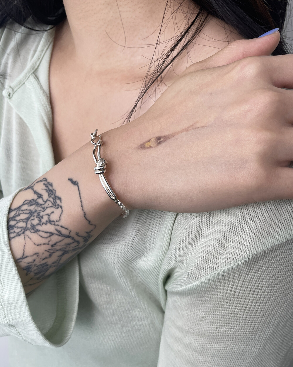 After care : 은 소재 (sterling silver) 는 동봉된 폴리싱(10만원 이상 구매시 증정)을 사용하시면 은 변색을 쉽게 제거 할 수 있습니다. 간단히 세척을 할 수 있는 방법으로는 치약을 미지근한 물에 희석후 부드러운 솔로 문질러주면서 닦아 주는 방법과 안쓰는 립스틱을 티슈나 부드러운 천에 묻힌 후 닦아주는 방법이 있습니다.