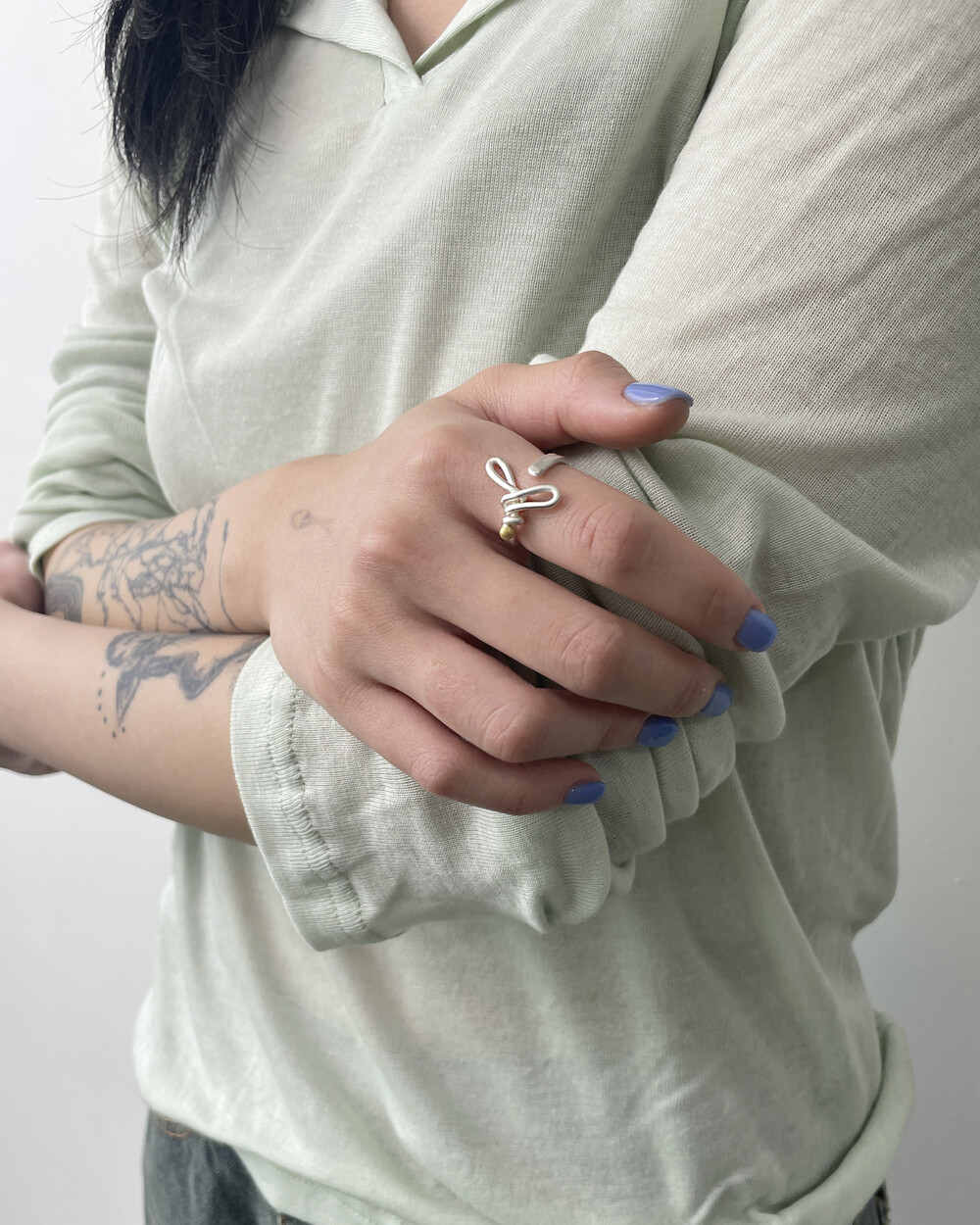 After care : 은 소재 (sterling silver)는 폴리싱천을 사용하시면 은 변색을 쉽게 제거 할 수 있습니다. 간단히 세척을 할 수 있는 방법으로는 치약을 미지근한 물에 희석후 부드러운 솔로 문질러주면서 닦아 주는 방법과 안쓰는 립스틱을 티슈나 부드러운 천에 묻힌 후 닦아주는 방법이 있습니다. 가장 좋은 방법으론 시증에 판매하는 은 전용폴리싱천을 이용하여 가볍게 닦아주시거나, 은/금 세척액에 담구어 사용하시는것을 추천드립니다.